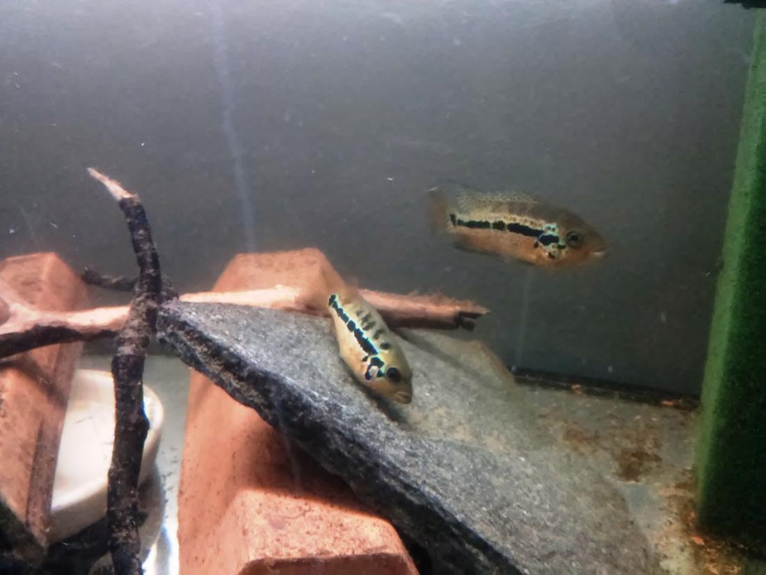 2.12.2016 jsem kupoval u p. Kalaby ryby označené jako "Vieja microphthalmus" . Už u něj v pytli v se mi zdálo že to nejsou oni. Nebudu rozebírat otázku a odpověď kde se tady tak málo chovaný ryby vzali ... :D Po dvou dnech doma bylo jasný že to nejsou microphthalmus, ryby byly původně 4ks ale dvě byly tak slabé a furt se to řezalo že zbyly jen dvě. Po mém pozorování a ujištění u pár kolegů bylo jasné že se jedná o P. motaguensis, nebo nějakej jejich hybrid, protože to přišlo prý někde z Indonésie z farmy :roll: . No čert to vem, co mě ale překvapilo bylo jak se to už po pár týdnech ve velikosti cca 4cm začalo barvit. A co mě zabilo úplně, když jsem dnes přišel z práce a na placák kladla asi 5cm samice jikry a 7cm samec je "ojížděl" :shock: