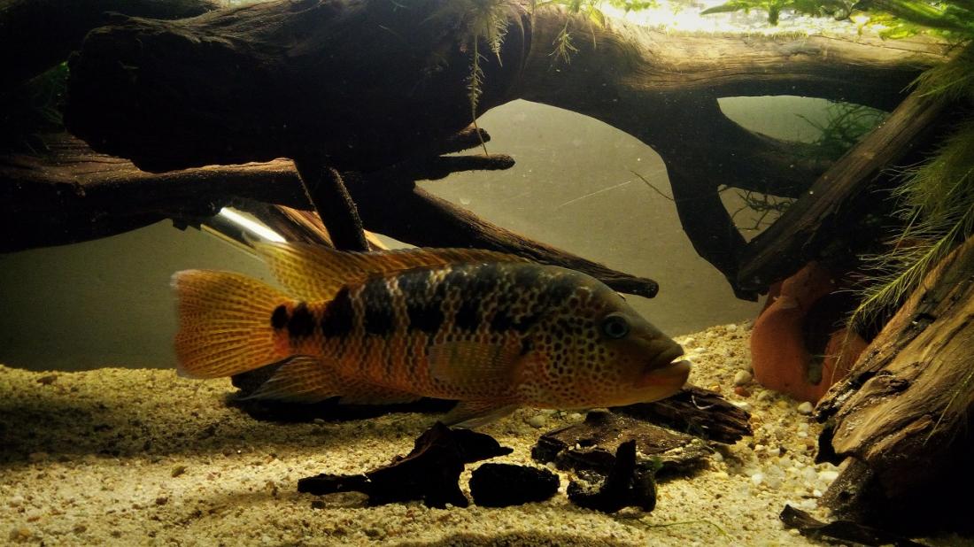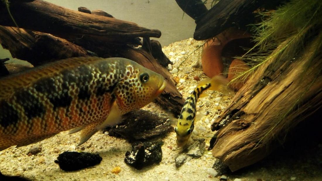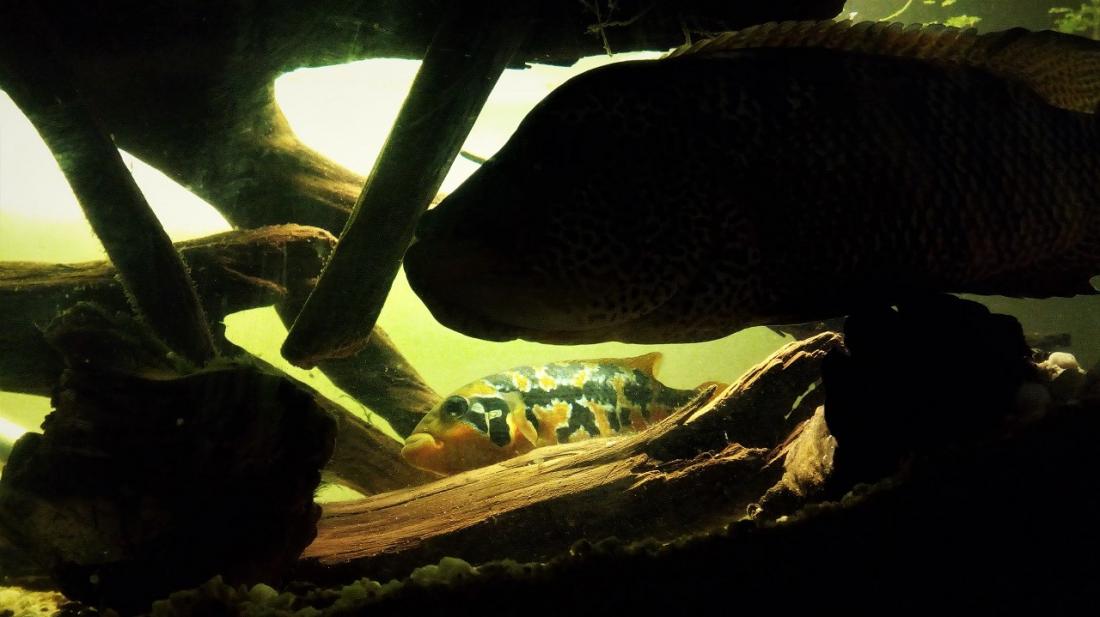U tvorů se silnou vazbou na teritorium (ve vodách bohatých na kořist nemusí být větší než metr na metr) asi nebude celkový prostor zdaleka tak důležitý jako to, jak se tam cítí. Je to jen osobní spekulace, ale třeba Papulčina stejně stará zatím nespárovaná sestra v neporovnatelně větším akvárku hned vedle je proti ní "poloviční" a jejího tátu (žije v cca 1000 l o více druzích, ne ovšem u mě) by náš Potvůrka ani nepovažoval za soupeře, ačkoli je pěkně urostlý... Co jsem si nemohl nevšimnout, ve společenských akváriích bývá (mimo dobu tření) velikost teritorií jen o málo větší než délka samce, víc prostě nedá... zatímco v mnohem menším soukromém si přitom jmenovitě náš dokonce vyčlenil místo, kam prostě nevplouvá. Nikdy. Něco jako Kocour v Červeném trpaslíku - " To je moje, to je moje, to je moje... Tohle místo ale nechci. To není moje." On si to zmenšil!