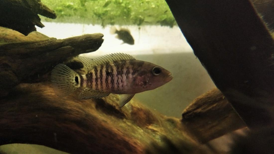 Protože se mi potěr nafotit nepodařilo - co záběr, to rozmazaný naštvaný pantáta Potvůrka (cichlidy si pojmenovávám podle nejvýraznějších rysů každé z nich, ať už fyzických nebo povahových, takže když doma zahlásím něco namátkou o Divousovi, Fešákovi či Princezně, všichni okamžitě vědí o jakou konkrétní rybu jde ;) ) přidávám alespoň něco z archivu.
