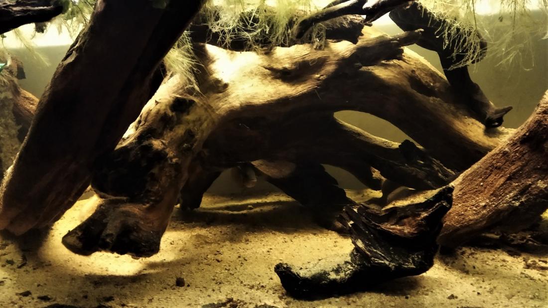 Přidávám ještě snímeček z běžné údržby odchovny. Na všechny ostatní reaguje sameček útokem při přiblížení k akvárku na metr, zatímco já se mu tam můžu vrtat jak chci a on je v absolutní pohodě (mám ho od čudly, je to tak stále). Samička taky. Z jejich strany je to neuvěřitelná důvěra a z mé klika jako trám :D