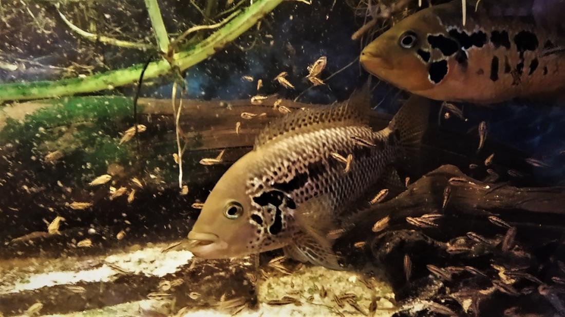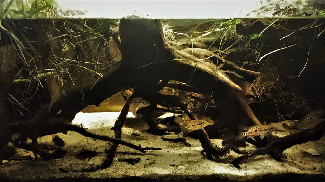 Ještě jedna se zakládajícím párem (fotku jsem musel vytáhnout ze své prezentace na rybicky.net, v compu jsem nedávno omylem smáznul složku s většinou fotek mladších než rok), akvárko (spíš palu) s od rodičů nedávno odstavenými prcky, a na závěr náš nejmenší sameček (zatím přes 10 cm, ještě nevybarvený) od Norimberku :)