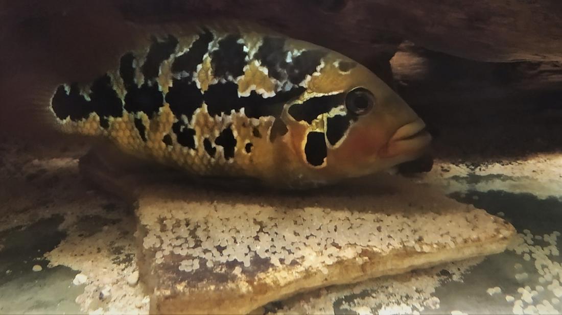 On je pětiletý, měří 33,5 cm (zaokrouhleno, přesně na milimetr jsem míru nechytil), ona tříletá s délkou 18 cm. Ostatní páry jsou z jejich prvorozených potomků a v Německu dokoupených nepříbuzných. Tam jsou zatím rozměry partnerů podobné, barevně ale už teď obrovský rozdíl - dvě holky jsou žlutočerné jako vosy, další s výraznějším podílem červené (po mámě), dva kluci prozměnu tyrkysoví a třetí je lehce do zrzava :)