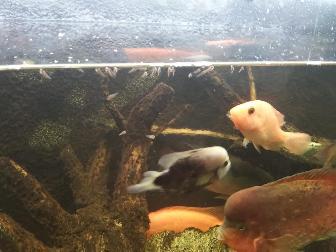 Ještě trochu . Dnes jsem měnil vodu v 800l kde mají breidohri naopak vytřeno a rozplaváno . Hlídají teď srdnatě zbytek mrňousků . Normálně jsou v rohu u dna ale jak jsem začal vypouštět vodu , mrňousci se nahrnuli k hladině a ještě doprostřed nádrže do volnýho prostoru . Samozřejmě to neuniklo ostatním obludám a rodiče se měli k...a co otáčet aby ubránili alespoň pár kousků . Zvlášť petenie na nich mohli oči nechat :twisted: