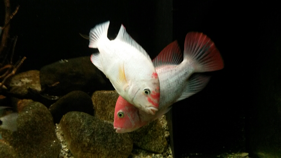Teraz mi plávajú doma potomkovia týchto rýb. Jedna biela (ako som mal) a jedna Rúženka (Šípková).