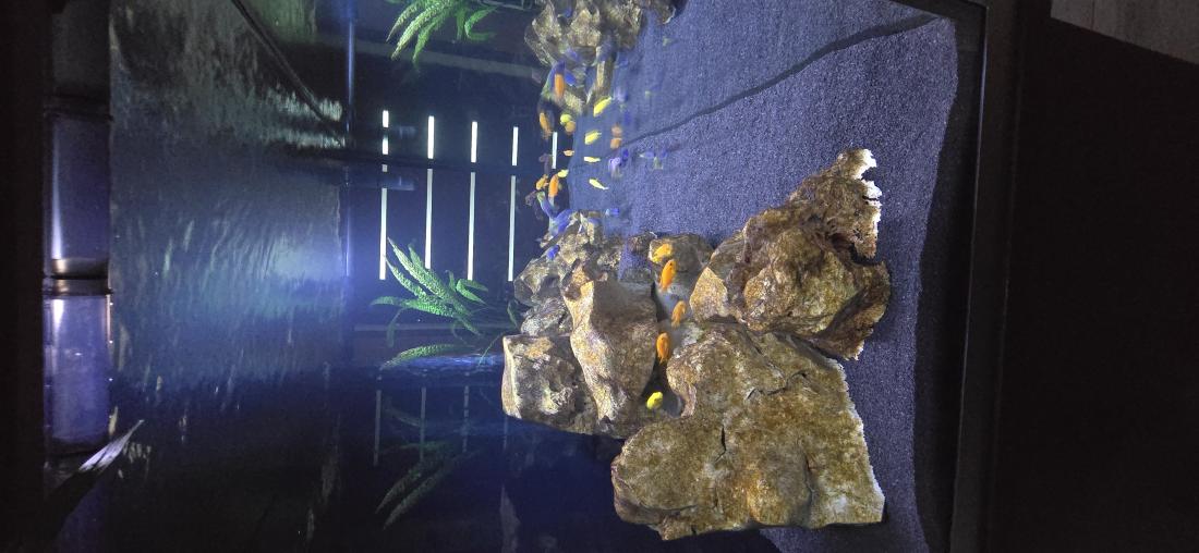 [b]Dekorácia v nádrži:Kame sú vápenec z Čiernej Hory,piesok Denerle čierny1-2mm,pozadie čierna folia