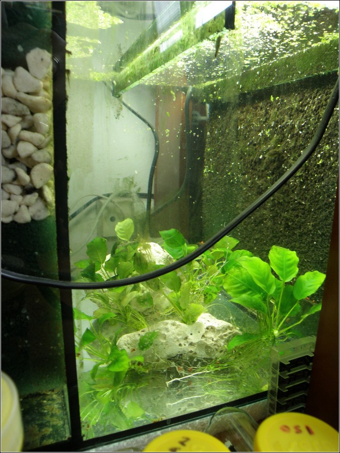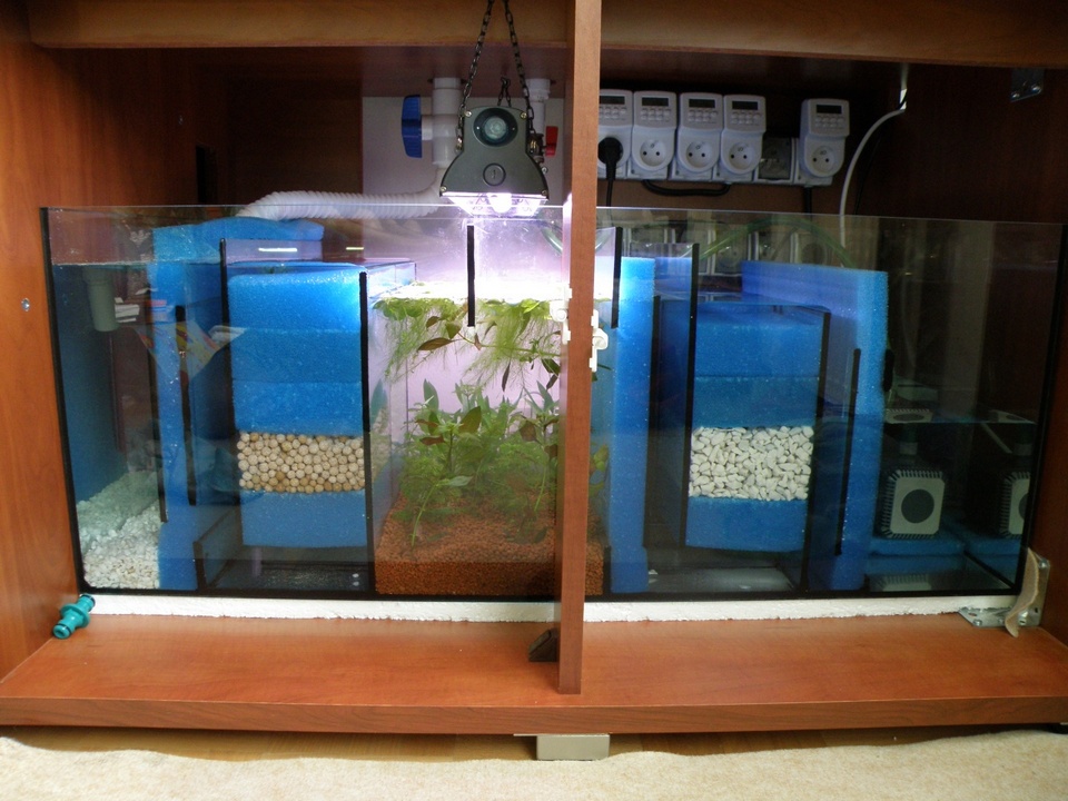 Pridám sa aj ja. Na fotke je viac-menej aktuálny stav. V prepadovom filtri (pre Malawi akva), ktorý je v skrini pod akváriom, mám špeciálnu komoru pre rastliny. Má samostatné osvetlenie. Boli tam rôzne rastliny, ale kvôli údržbe ostali len anubiasy a na hladine plávajúca lemna minor. Pôvodne bol aj substrát (aquaclay).