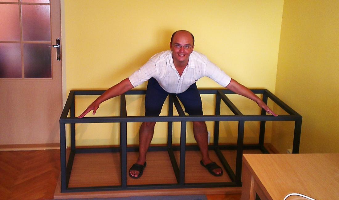 Stojan pod nádržou: jokel profil: 40x40x3 mm, rozmer: 2000x650x800, nádrž obložená drevotrieskou a PRILEPENÁ nie prišrubovaná lepdlom Den Braven Mamut Glue (nostnosť po vyschnutí 22kg/cm2!!!)