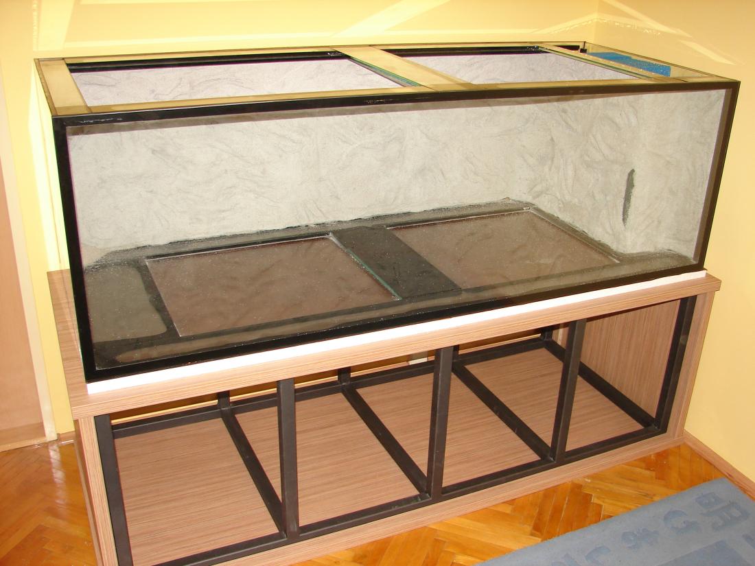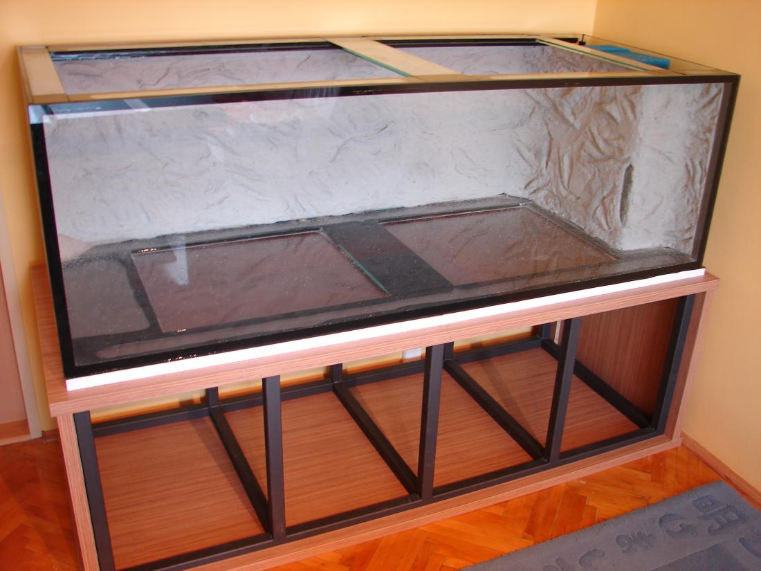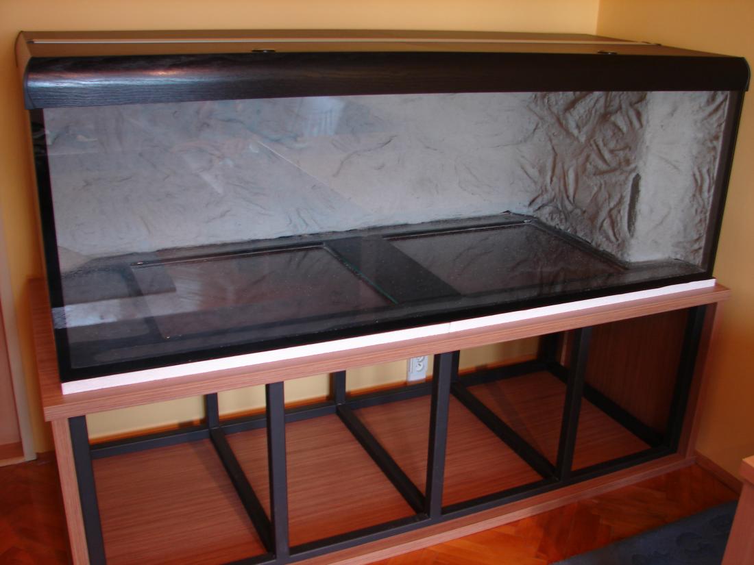 Dekorácia v nádrži: piesok, konáre, zadná a pravá strana – vstavané pozadie (materiál netúším – tajomstvo autora)