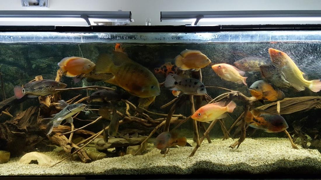 Mám rád pohľad na celé akvarko. Máš tam kopec dreva a len jeden domček z kameňov.