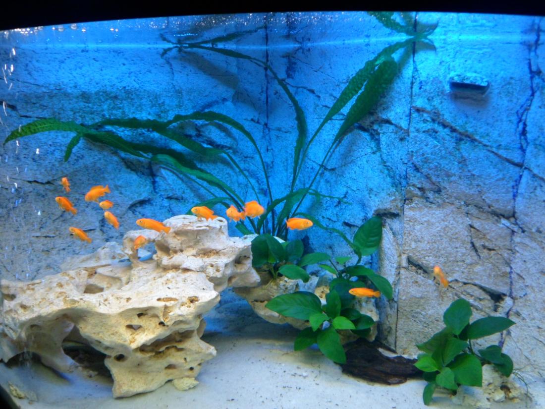 hod aj foto celej nadrze ;) , ja len poznamka, ze pises , ze tam mas rastlinu microsorum..., neviem ktoru myslis ale ta vysoka rastlina vzadu sa mi skor podoba na http://rybicky.net/atlasrostlin/cryptoc ... ogetifolia
