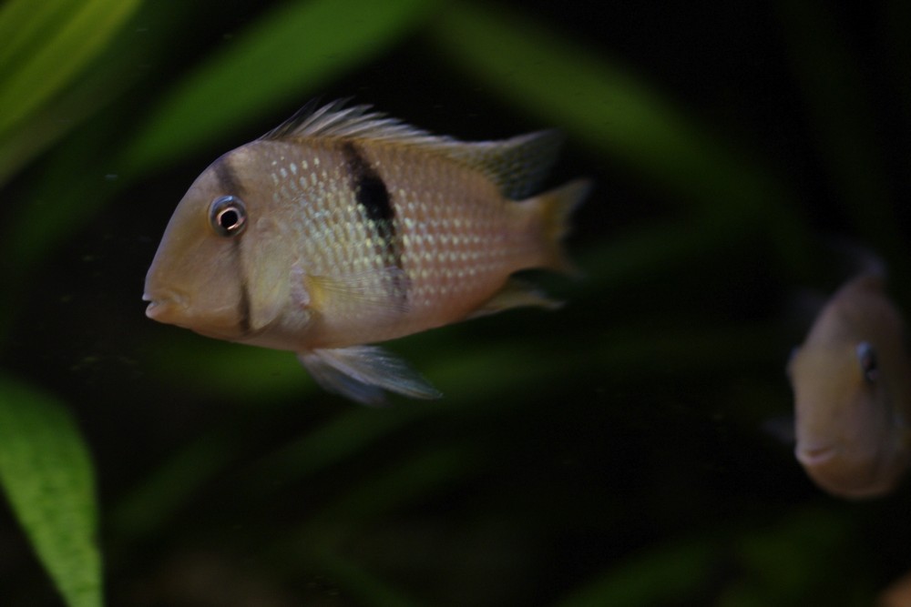 Pár fotek. Nově pár Laetacara fulvipinnis, který se jako pár vůbec nechová. Každý večer při stmívání akvária začne samec neskutečně machrovat a předvádět se. Tváří se u toho strašně zle :) . Snad se mi to povede trošku líp vyfotit.
