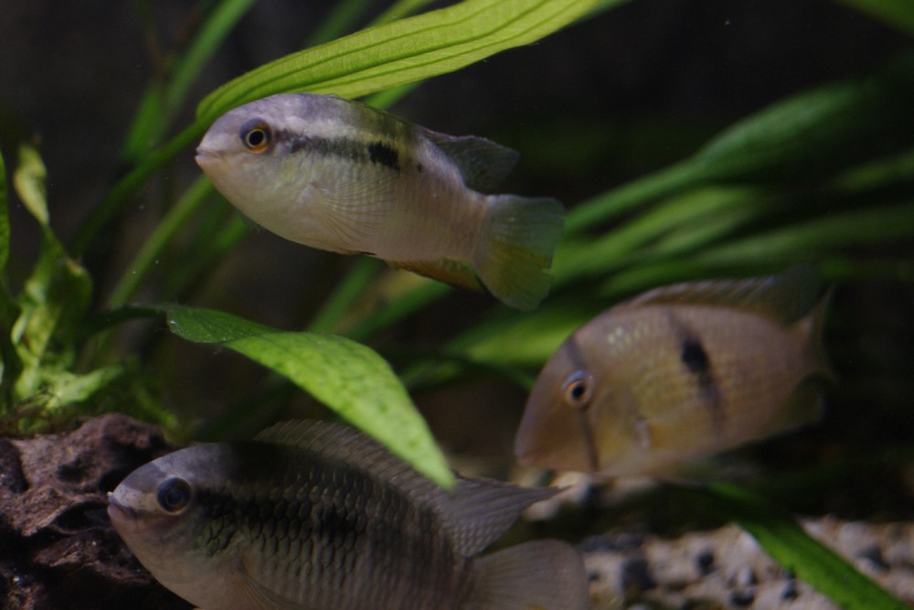 Guianacary mají cca od 8 do 13cm. Jeden samec Microgeophagu chcípnul a druhý zmizel (asi taky pošel a nějaký elkáč ho sežral). Nebyl to moc rozumný kup. Rybky jsou starší a asi stres ze spoluobyvatel a změny prostředí na ně byl moc.