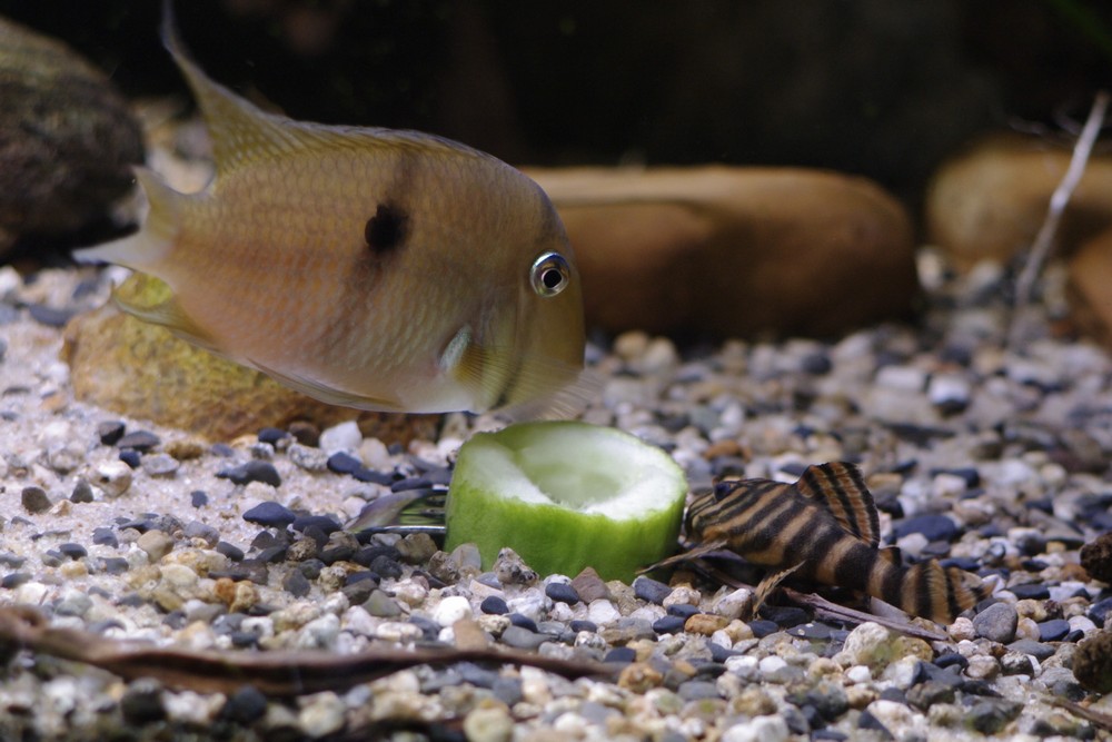 Všechno narostlo! Chtěl jsem jeden pár Tahuantinsuyoa prodat, aby bylo víc místa pro Akary a prcky Guianacar (největší atakuje 2cm). Nakonec si zájemce vzal páry oba. Snad budou mít víc klidu, spárují se a konečně vytřou. Až to zase o chlup poporoste, tak budou na řadě pancéříčci Brochis splendens. Jsou to strašní srašpitlové a moc se jim v akváriu nevede.