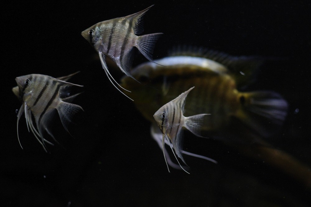 Tak nakonec ani Akary hnědé ani Biotodoma wavrini, ale 5ks Skalár amazonských. Jsou to prckové, ale drží se dobře.