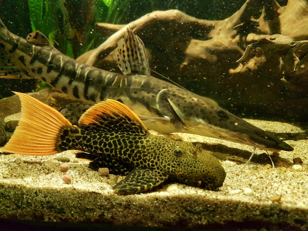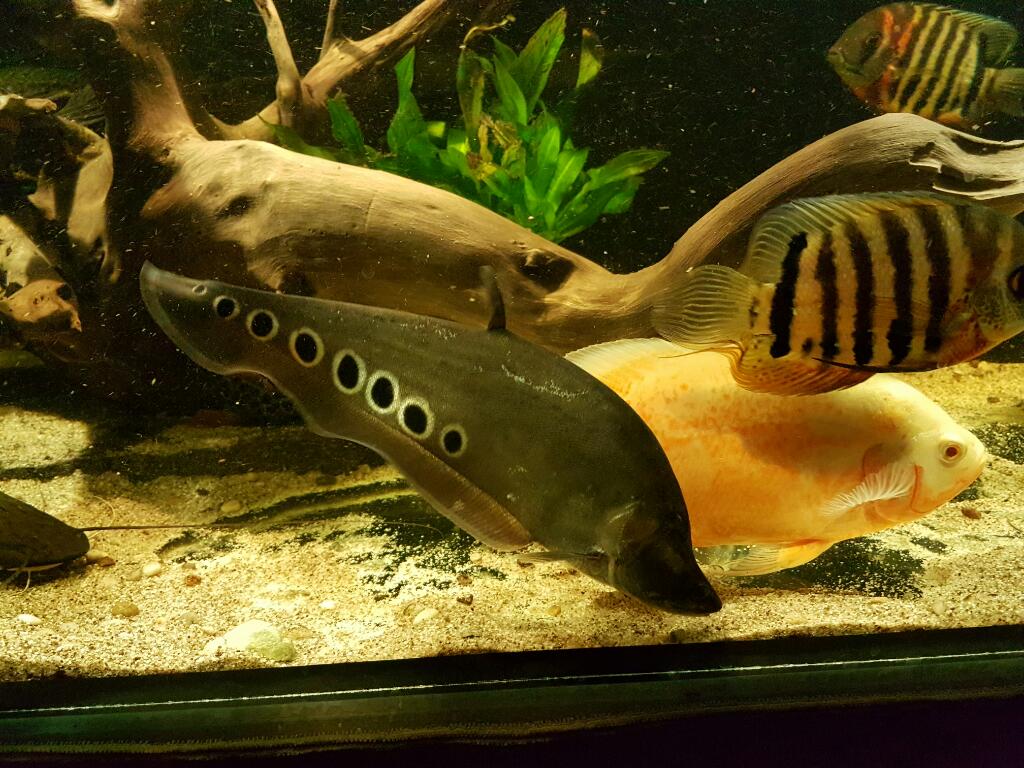 No ved v popise som uviedol "grow out tank" Aktualne v akvariu plavaju dvaja ocelati, 3 festae, nozovec, 2 leopardi, 2 plecostomusi, rivulatus, platysoma a megalodoras platysoma mala 9 cm vtedy ked som zakladal nadrz, takze niekedy koncom augusta