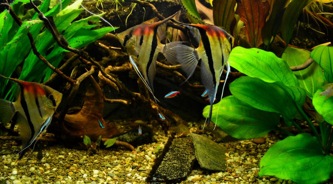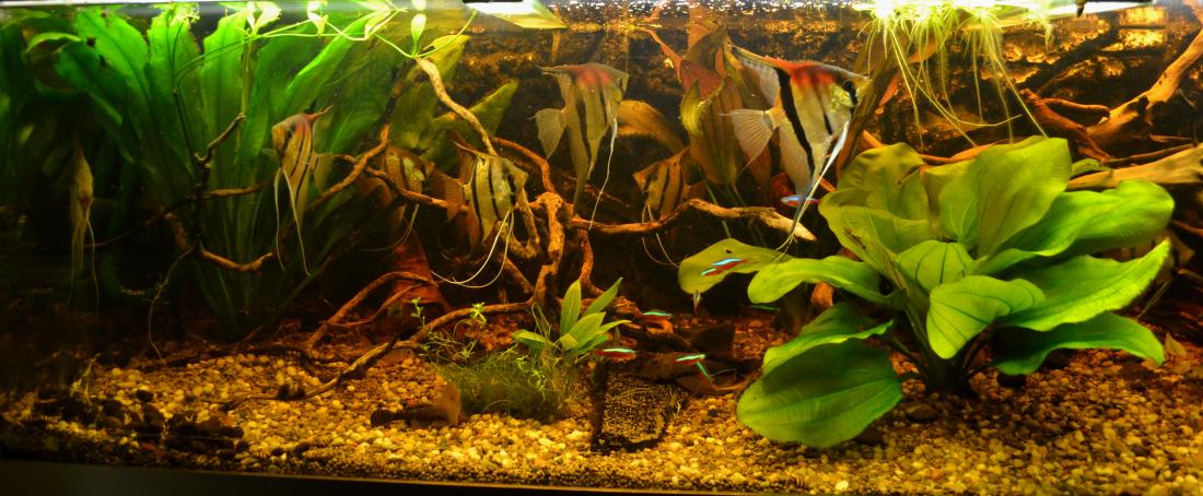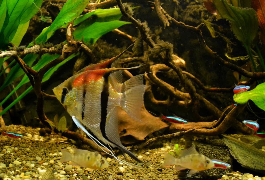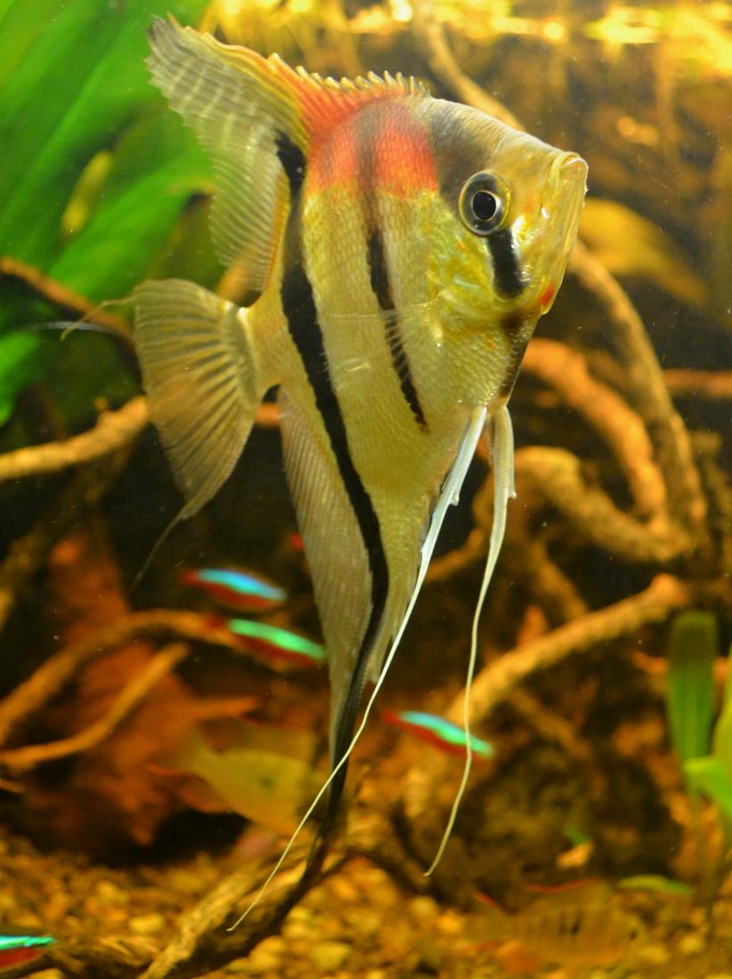 Jako mladej cápek jsem měl chvilku nádrž cca 90l a měl v ní 4 skaláry s neonkama . Hrozně mě tenkrát učarovali na školním výletě v Brně ve zverimexu Parmičky čtyřpruhý . Musel jsem si je koupit , lopotně je v autobusu dovézt mezi bandou dementů co furt cvrnkali do pytlíku 110km domů . Statečně jsem je na hulváta vylil do 90l mezi skaláry .... Pááánečku to jste měli vidět jak brzo začali mít neonky rozškubaný ocasy a kousance na tělě a hlavně jak rychle se skalárům zakrátili tyhle jejich nádherný a dlouhý prsní ploutve .... a hlavně už si tak frajersky neproplouvali v tý "obrovský" 90sátce ...