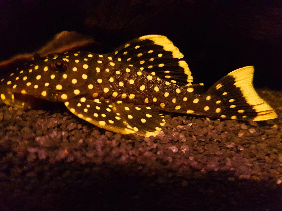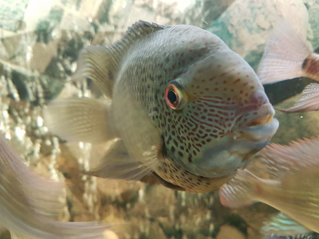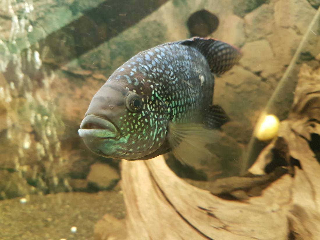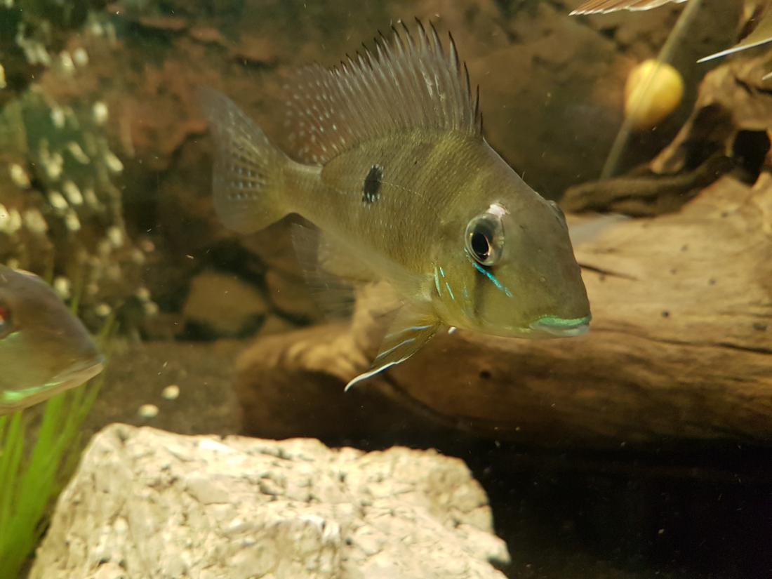 Ryby v nádrži: 1x Rocio octofasciata, 1x Thorychthis meeki, 2x Heros notatus, 2x Heros severum gold, 1x Heros sp. rotkeil, 2x Heros severum red spotted, 5x Geophagus altifrons, 2x Platydoras costatus, 1x Pterygoplichthys gibbiceps, 1x L177