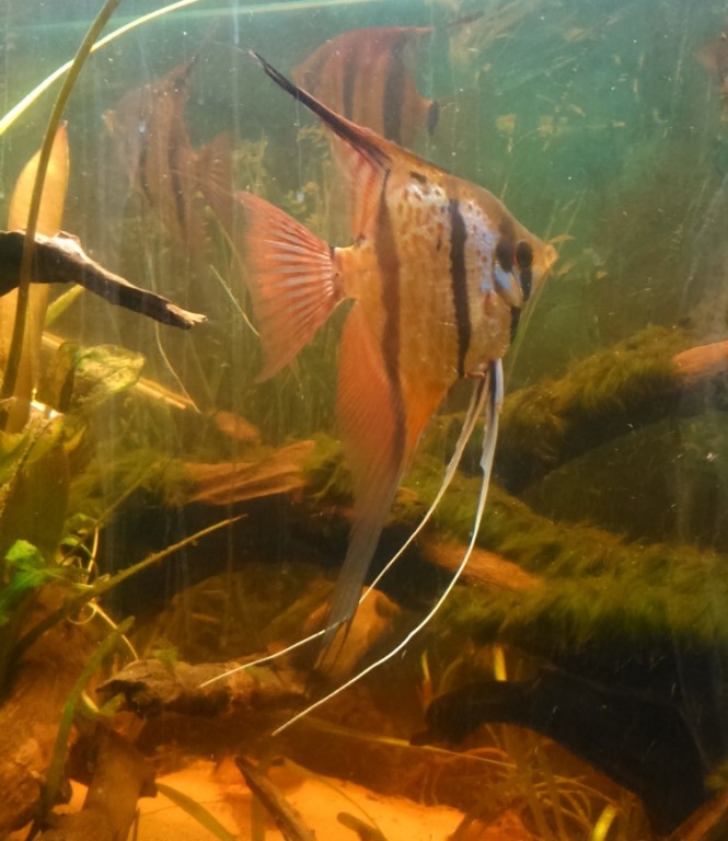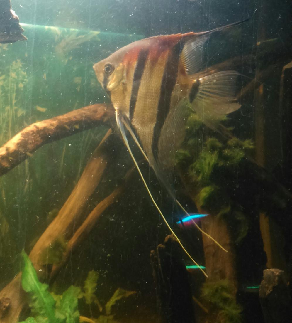 nejake menej kvalitne fotky ryb + pridavam na ukazku fotku 200L akvaria v ktorom su zatial 15x neonka cierna, 10x fantom cerveny, betta a 3 panciernicky