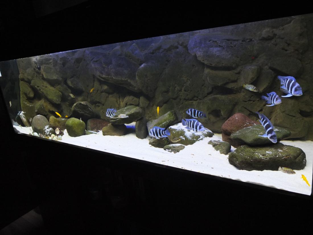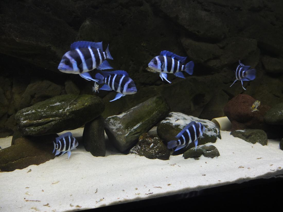 Ryby v nádrži: 7X C. Giberosa Blue Zaire Moba, 6x neolamprologus leleupi .. 6x alto.compre. KIGOMA, 5x L 134 peckoltia compta, cca 10 neolamprologus multifasciatus
