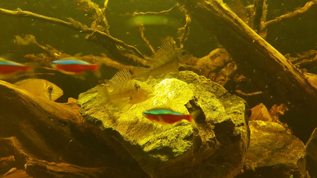 Před časem proběhla větší údržba. Všechny kameny a kořeny šly ven a byly očištěny a odkaleno řádně celé akva. Plus postupně vyčištěny oba externí filtry.