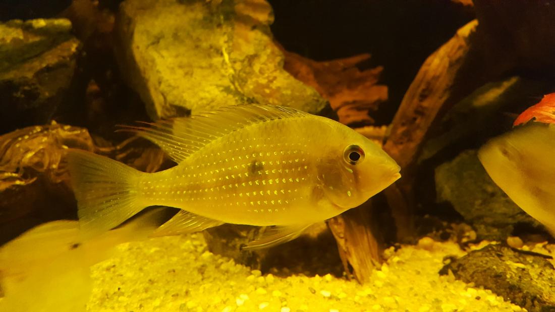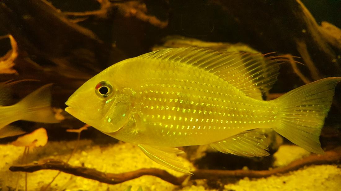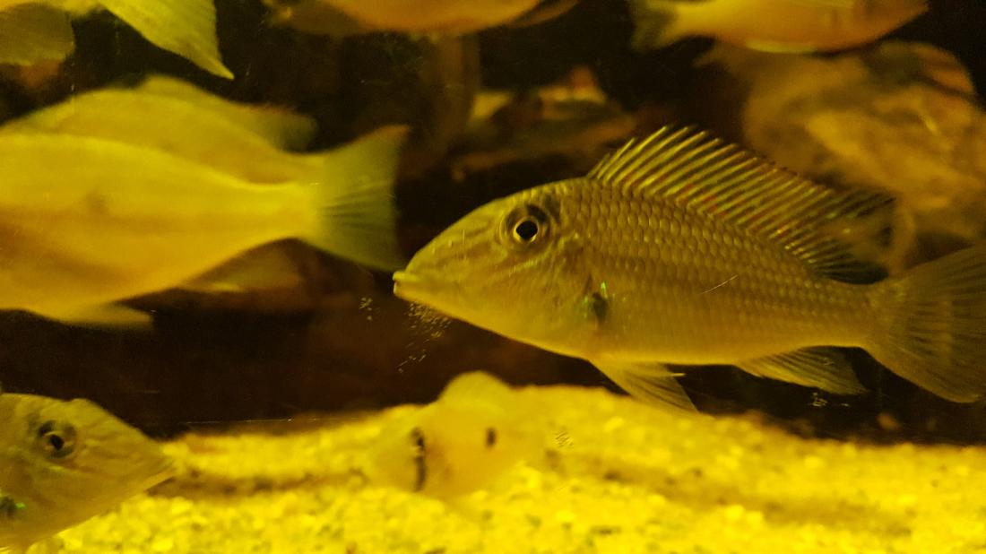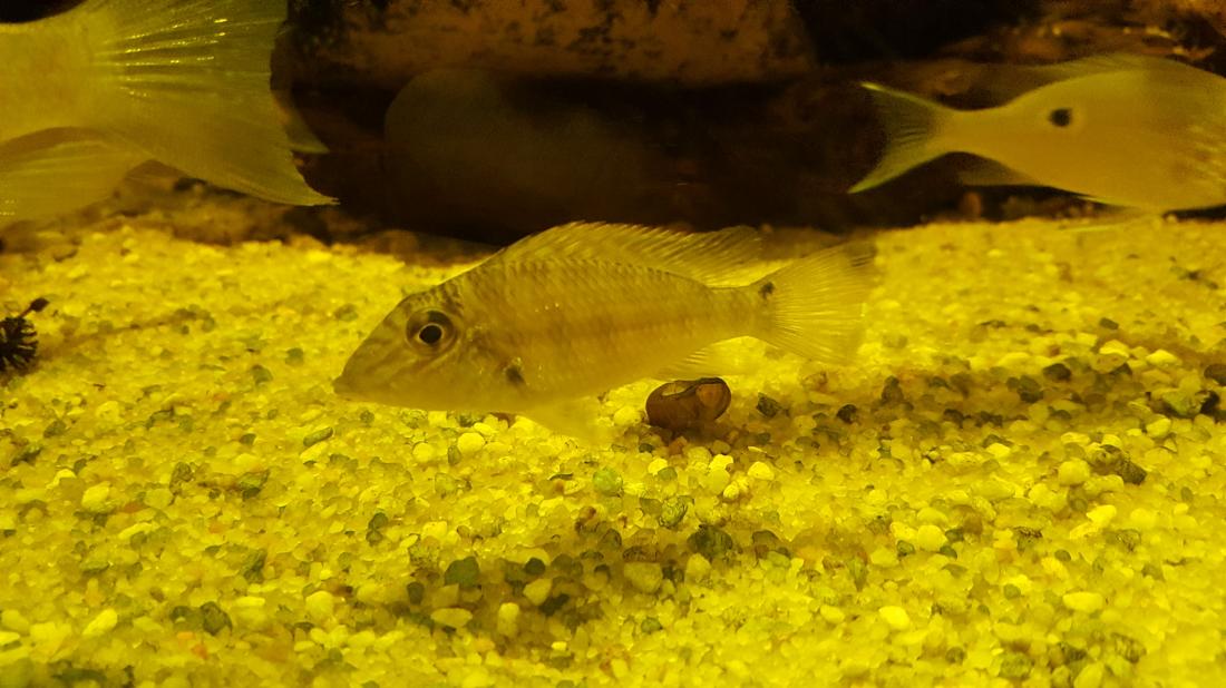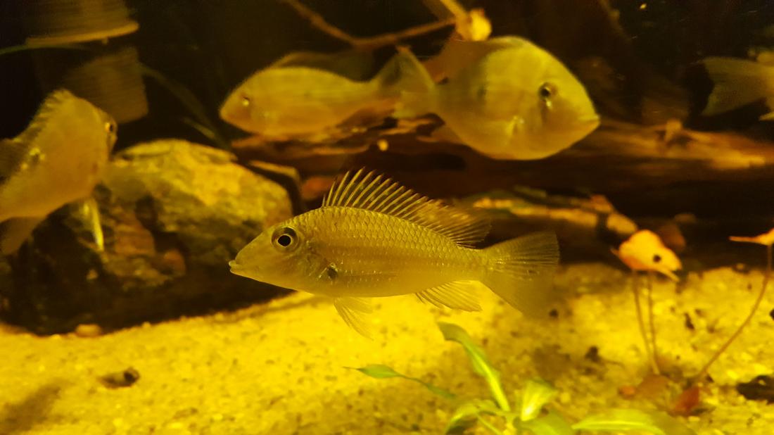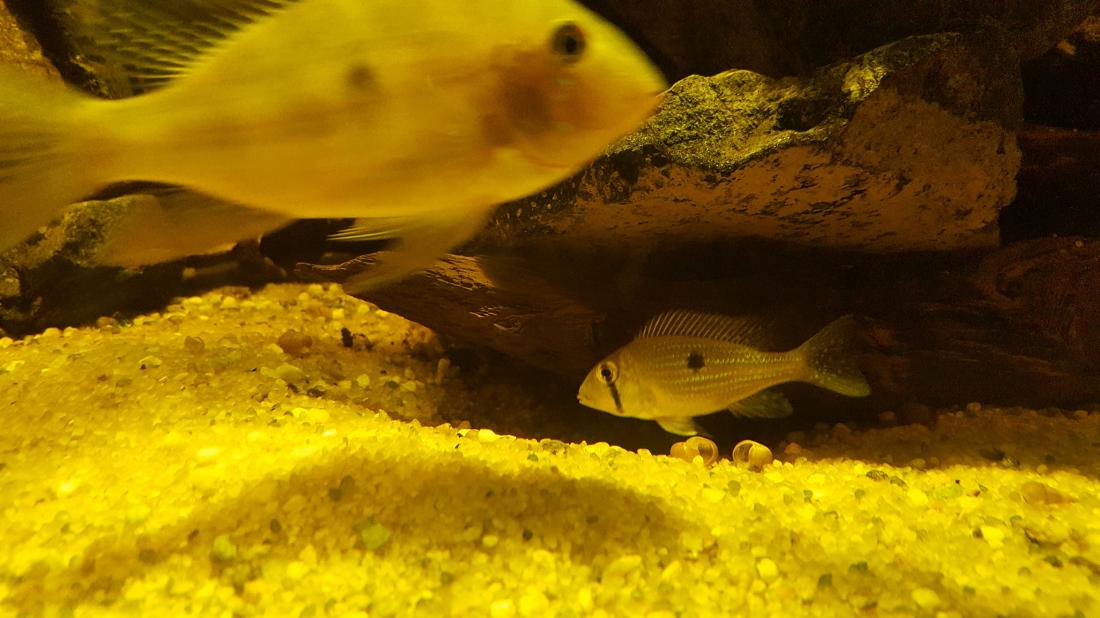 Crenicichla compressiceps dokáží být pěkně otravní a agresivní nejen mezi sebou. Jeden z dominantních samců často napadal o dost většího samce Mesonauta egregius.
