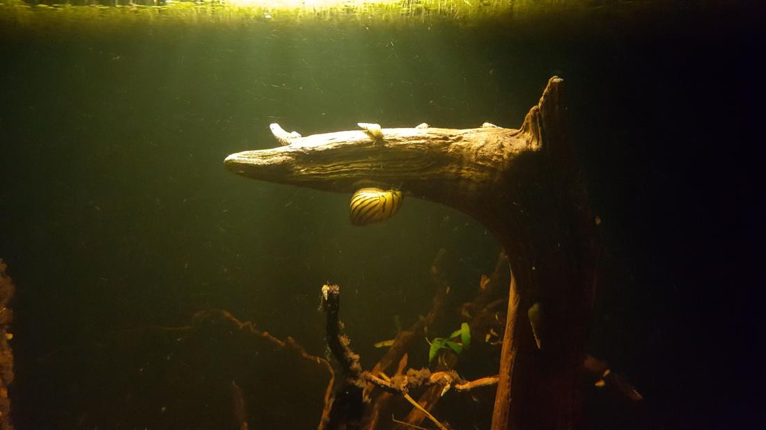 Ale po delší době jsem zase zahlídl i neritiny, tak jsem jednu blejsknul. Je to pozůstatek z předchozí nádrže a pozoruju, že se jim celkem daří.
