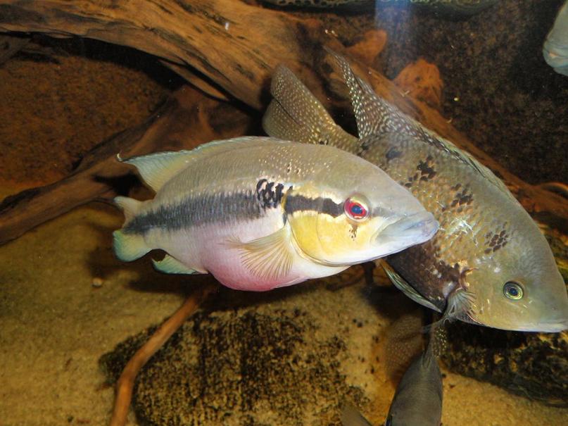 přidávám fotku takové šílenosti co mi vyvedl s Crenicichlou úchylák nadržený...normálně se spolu vytřeli, přitom má takový harém samic...