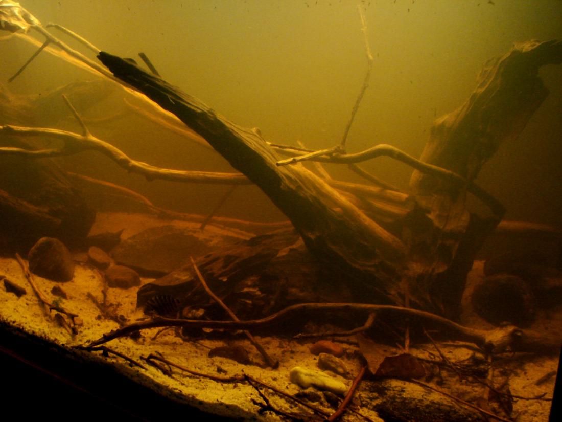 L090 alias nakonec L203 šel na výpravu mezi kryt nádrže a polykarnbonát...tam uschnul :( našel si jedinou skulinu, co je u hadic filtrů..Měl od začátku panickou hrůzu z Hoplarchusů, kteří si ho ale vůbec nevšímali... velká škoda. Pořídil bych jiného a většího, ale ty ceny za velké ryby :?