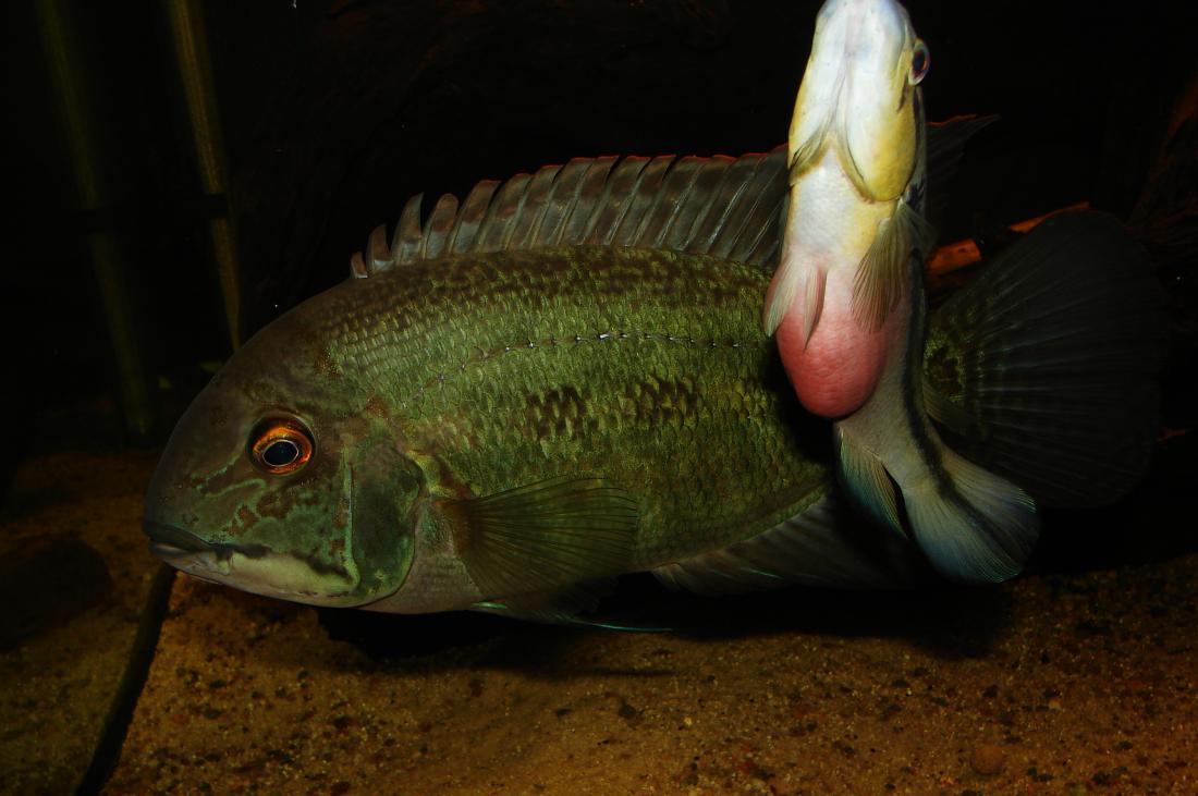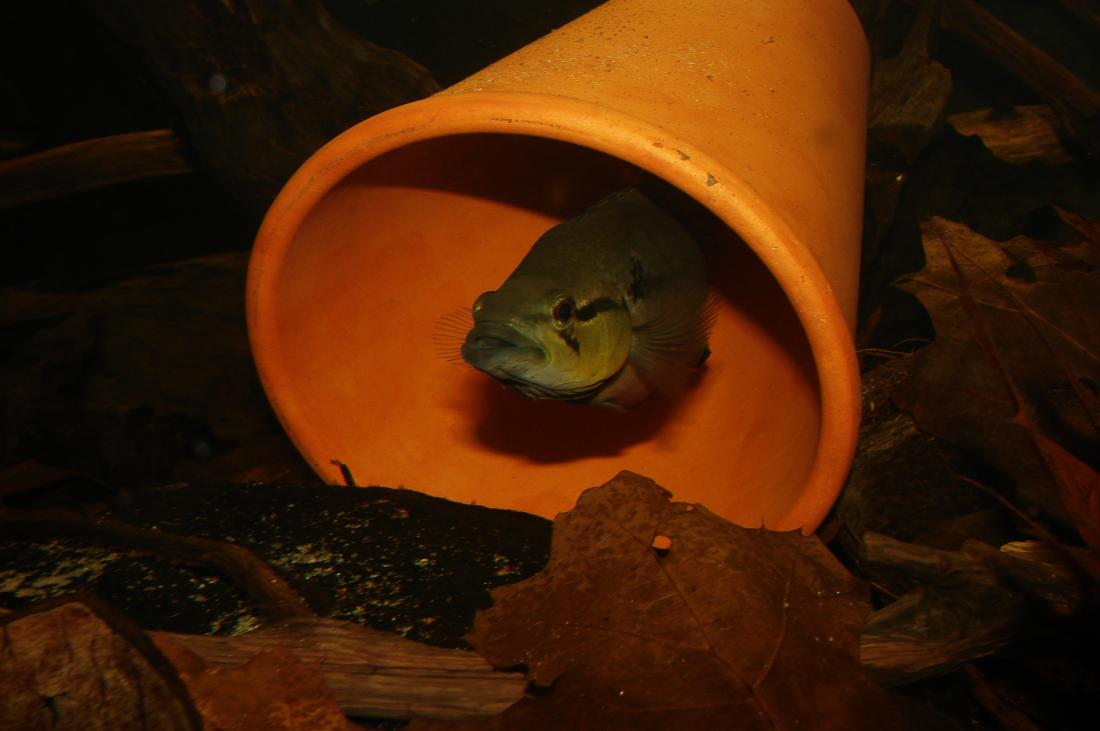 Tady jsou při tření, ale přišel jsem pozdě, tak jsem to brzo típl. Hlídá jen samec... samici zahnal trouba.