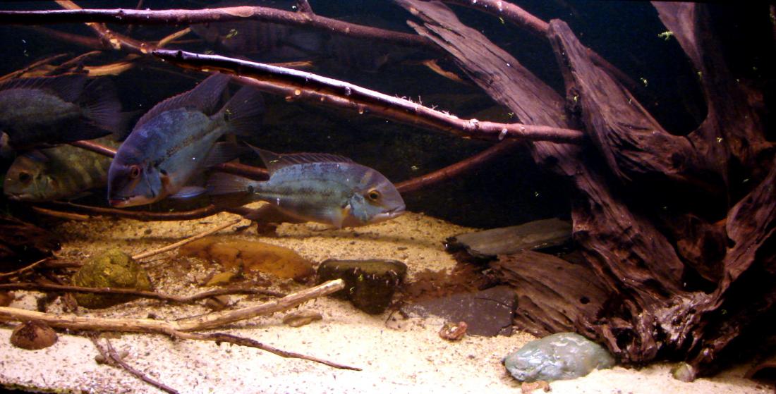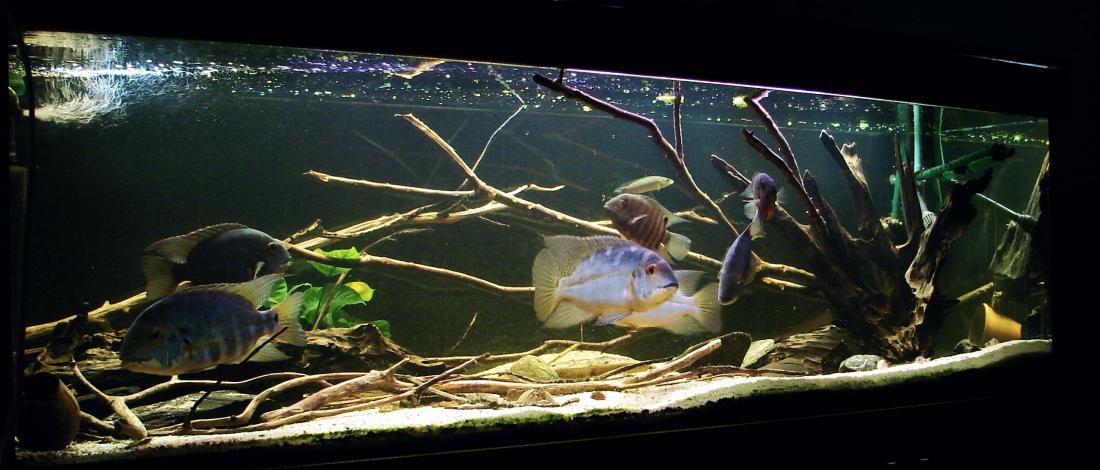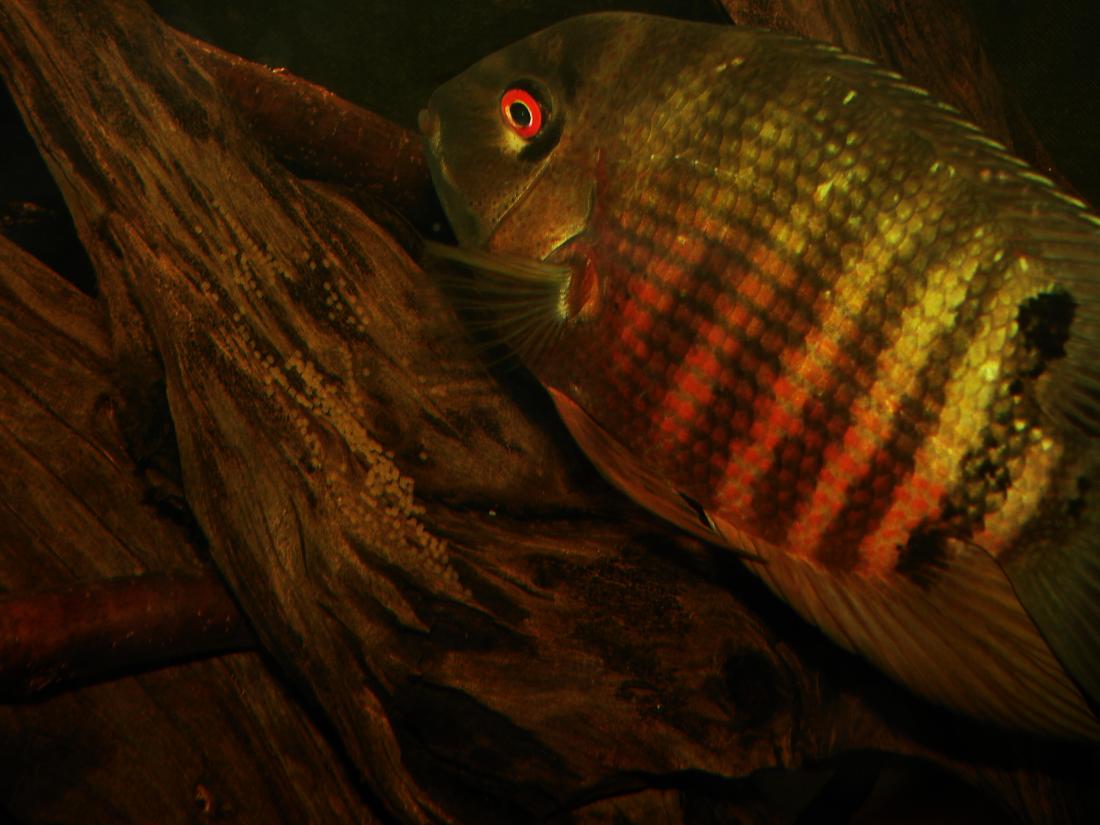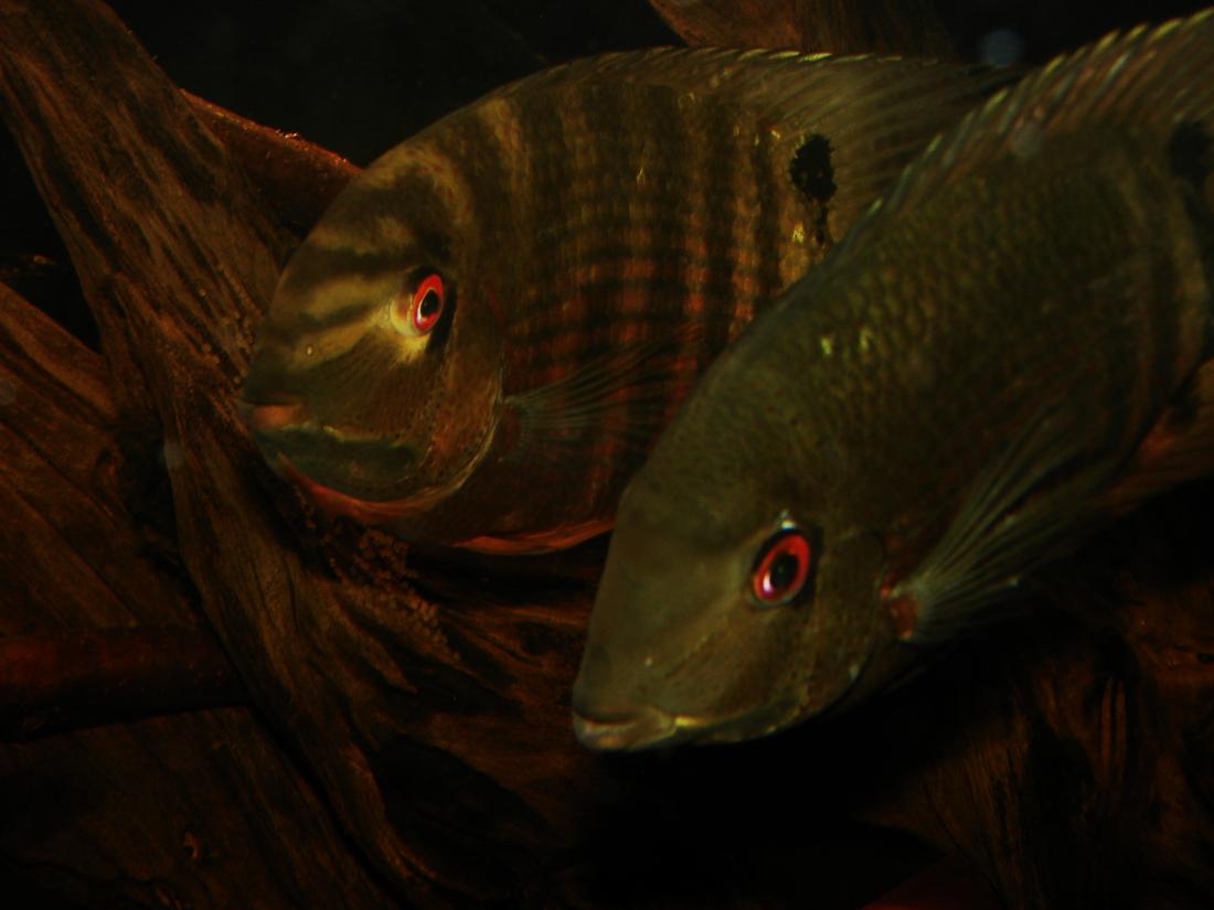 Dnes těsně před odletem na dovolenou se mi do námluv Hoplarchusu začali trít Herosi :) Je to jejich první vyter, takže to probíhalo tak, ze jeden klad jikry a druhy je žral...v mezičase odráželi útoky 3 a hop, kteří jsou ted nuceni spolu vycházet na prostoru cca pul metru... Vůbec se jim to nelíbí, ještě kdyz tam jsou s nima dva pruhování nervaci hlídající si malý kousek kořene. Takze veselo :) Crenicihly jsou jak andílci, a všem se naštěstí straní.... Jsem zvědavý na stav za týden.