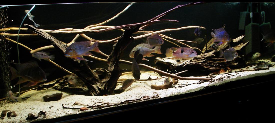 Abych něco napsal i o akva, tak už jsem byl docela nešťastný z těch Hypsele... Jak byla nádrž bez kořenů a plná ryb, tak mi ta ryba od Ondry dost mlátila samici. Po přidání kořenů se vse naštěstí uklidnilo a už spolu cukrují.