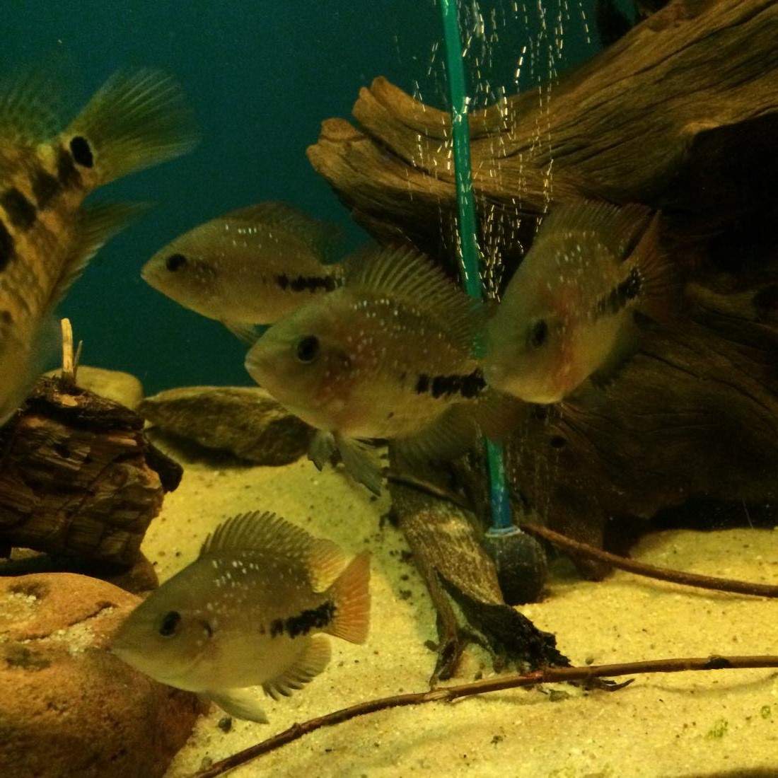 Satanoperky k nim taky nedoporučuju, terči potřebují svůj klid. Možná nějakej klidnější druh cichlidek apod. Videí na youtube s různýma kombinacena je dost.