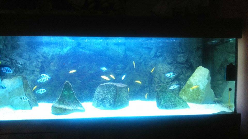 [b]Dekorácia v nádrži:3D pozadie na objednavku,biely kremičity piesok,plus kamene
