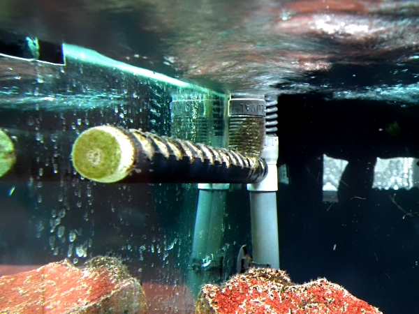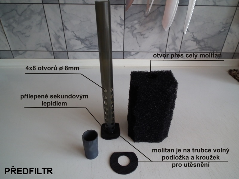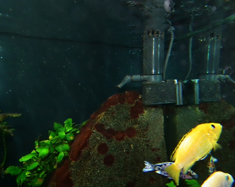 Filtrácia nádrže: Fluval FX5(místo sacího koše molitanová kostka jako předfiltr), odsávání hladiny(skimmer)vlastní výroby