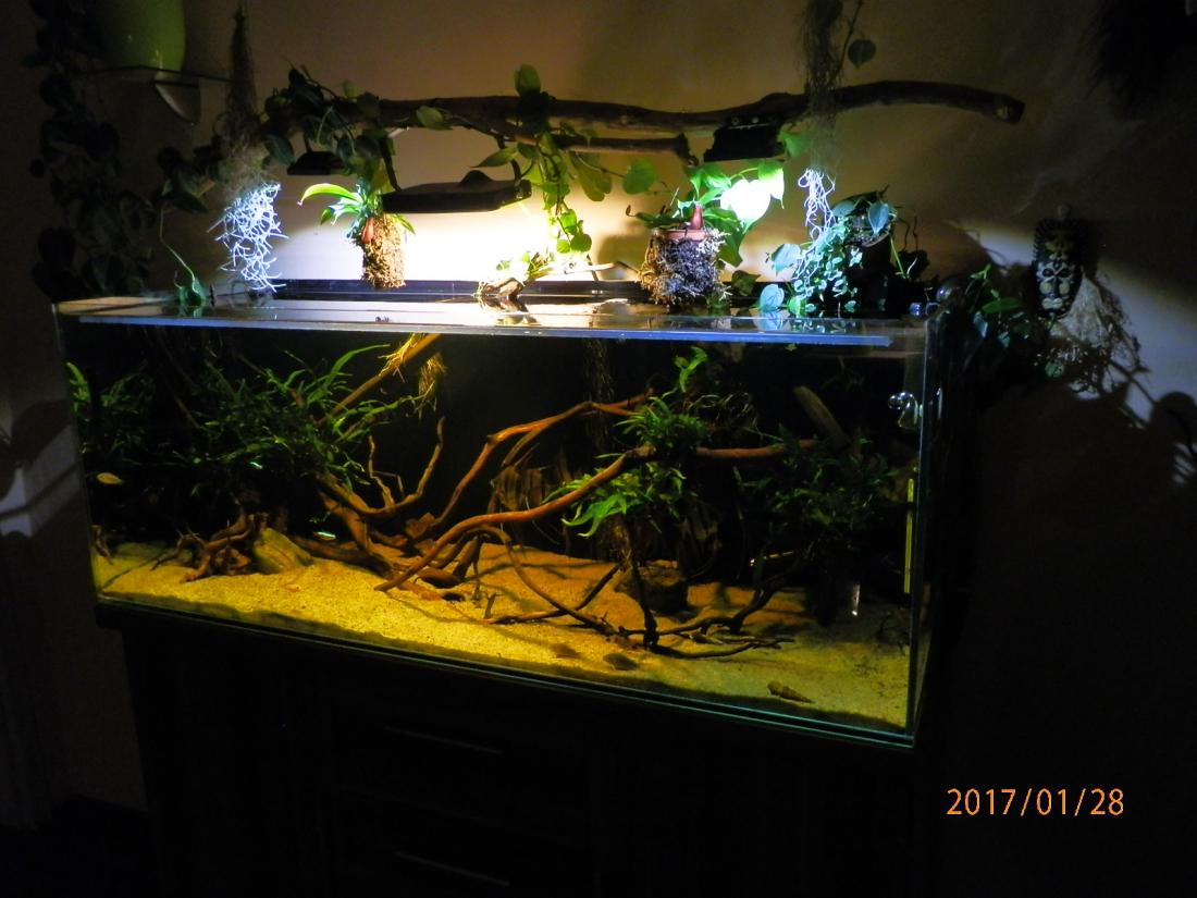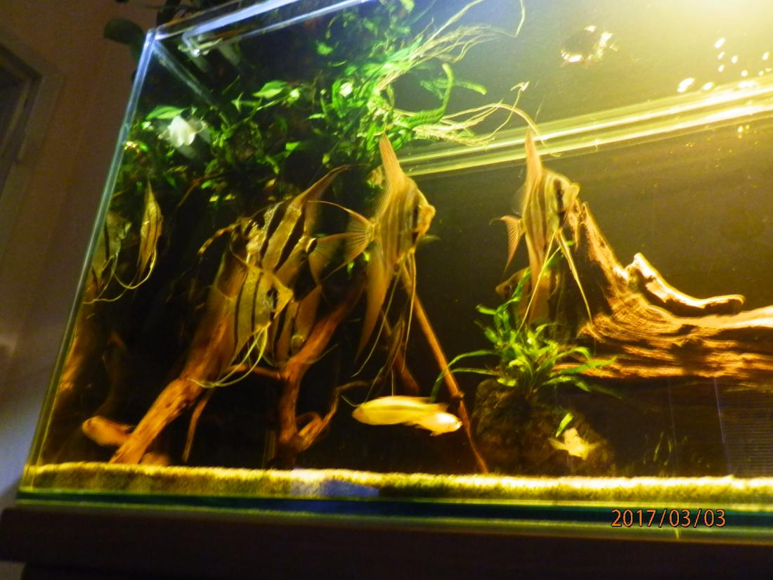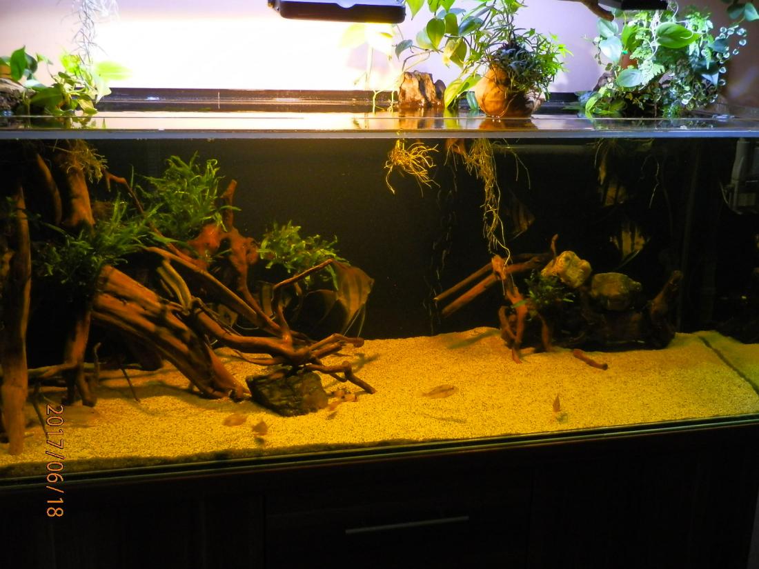 Vypadá to dobře s tou vrbou. Líbí se mi i jak máš řešené ty rostliny nad akváriem. Ale neuvažuješ o vyšším akváriu? Mi 50cm přišlo malé i pro Nanyku co jsem měl, natož pro altumy.