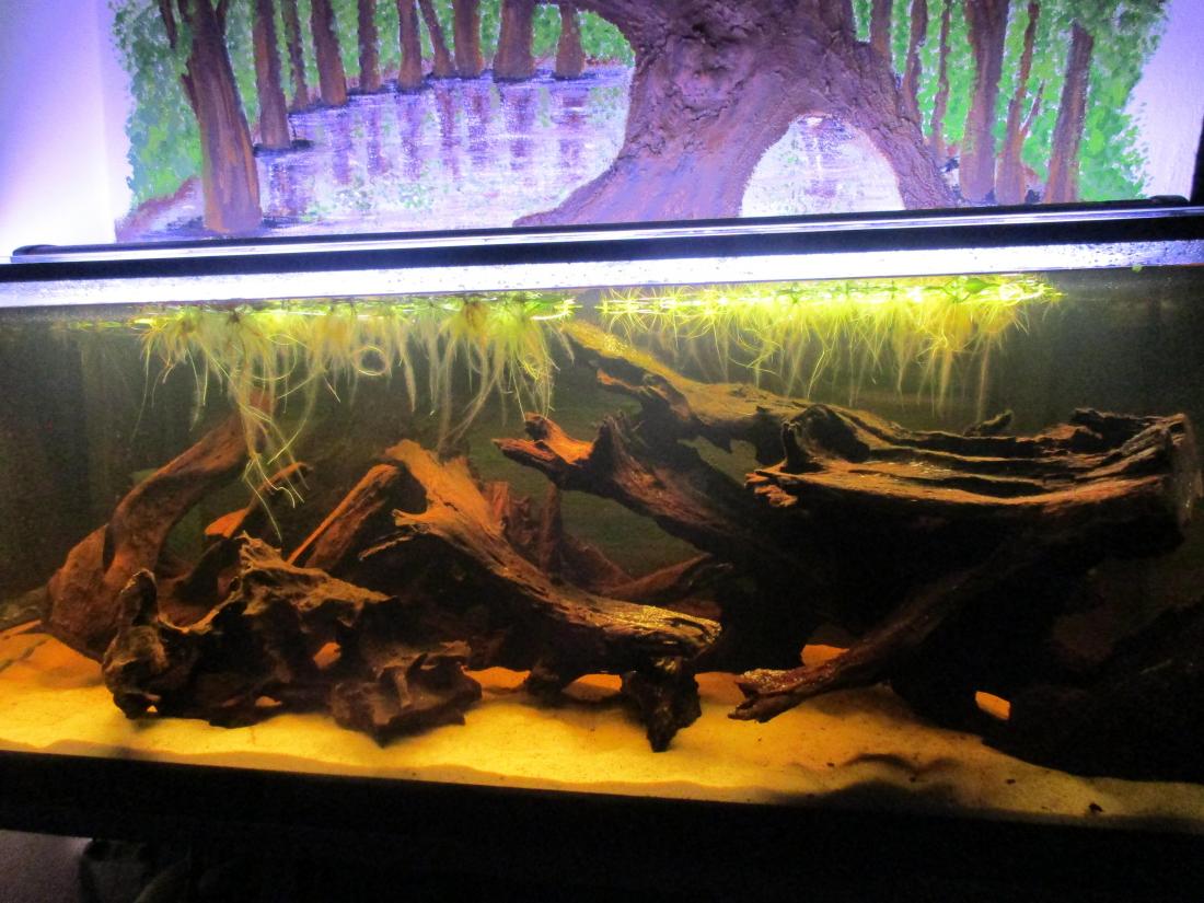 Akva uz je ale zabehnute a az na jedno polo-plavajuce drevo ide vsetko podla planu. Dokonca aj Lymnobiu sa celkom dari. Teraz uz len zacat zhanat ryby :) .