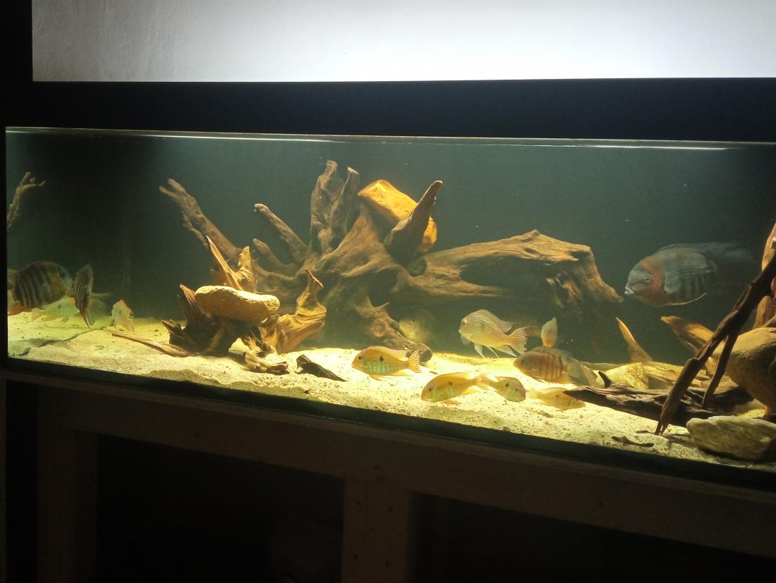 Ryby v nádrži: Hypselacara temporalis 1ks(samice), Heros sp- Rot Keil - 2ks, Heros sp. Curare - 4 ks, Geophagus sp. Rio Caete - 3ks, Geophagus sp. Red Head - 5ks Pterophyllum scalare - 4ks, Hypancistrus sp. L 201 -1ks, Hypancistrus sp. L340 - 4ks.