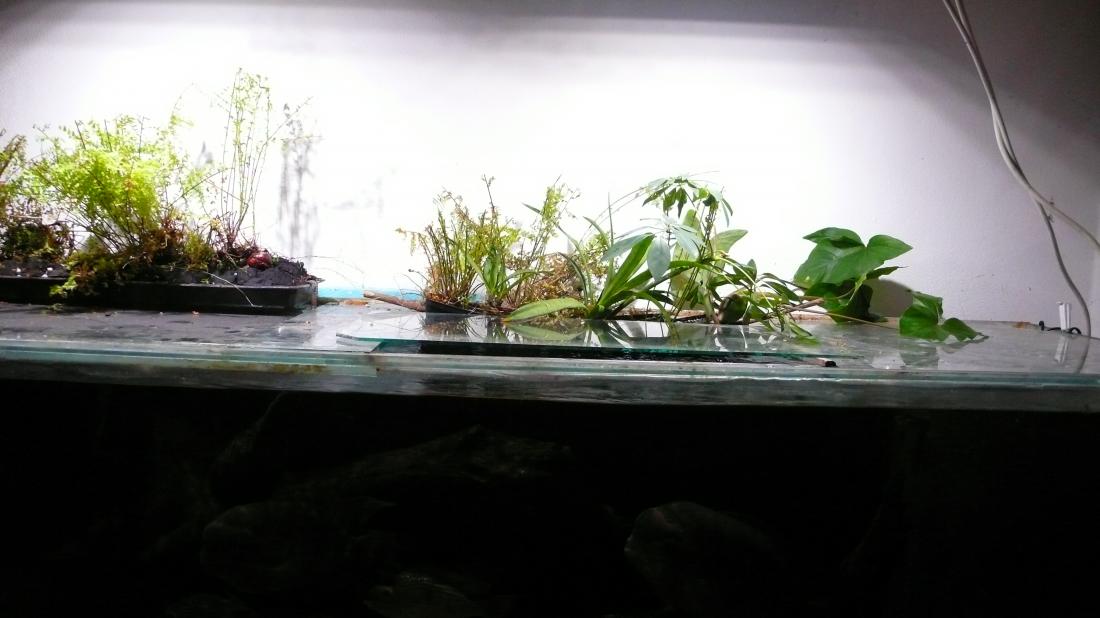 Jo temporalis jsou velcí. Samec má určitě kolem 30cm a samice je o něco menší. ;) No já ty kytky řeším hlavně kvůli prostoru nad akvárkem. Je to tam takový lapač prachu a vlastně pořád nevím, jak to tam vymyslet, aby to trochu vypadalo a světla mohla být vysoko nad akvárkem, protože takhle podle mě světlo v akváriu vypadá přirozeněji. No a taky trochu, protože se mi líbí paludária nebo to Igorovo akvárium a snažím se ověřit jak na to.