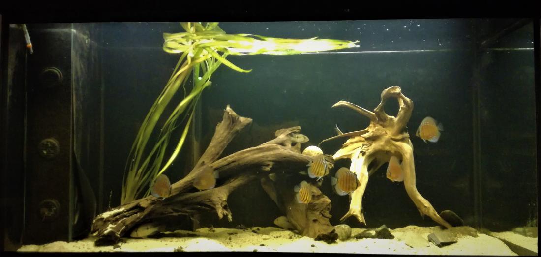 V sobotu som prekopal akvarko, všetky konáre vyhodené a kúpil som nové drevo plus nejaké staršie zásoby som tam prihodil.Je to kvôli jednoduchšej údržbe lebo okolo konárov sa nedalo odsávať.Nové drevo pustilo krásnu žltú farbu, vyhodil som aj všetky rastliny aj tak boli v biednom stave .. Ale v nedeľu som tam nakoniec vrátil vallisnerku.
