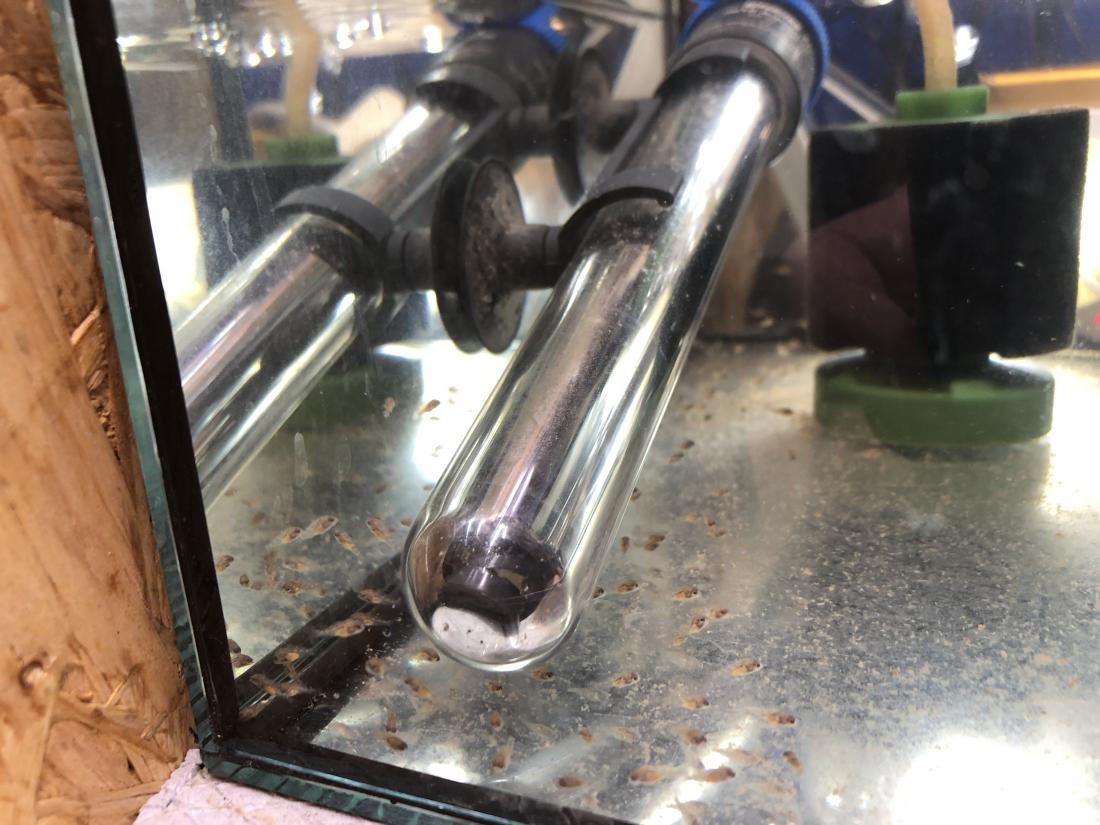 Ještě musím koupit menší filtr na bublifuk, abych pro prcky mohl držet nižší sloupec vody ať se pak lépe dostanou ke krmení...