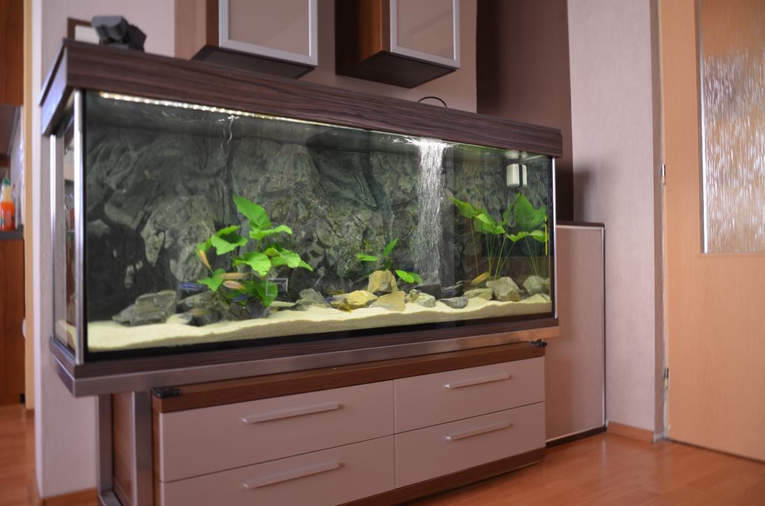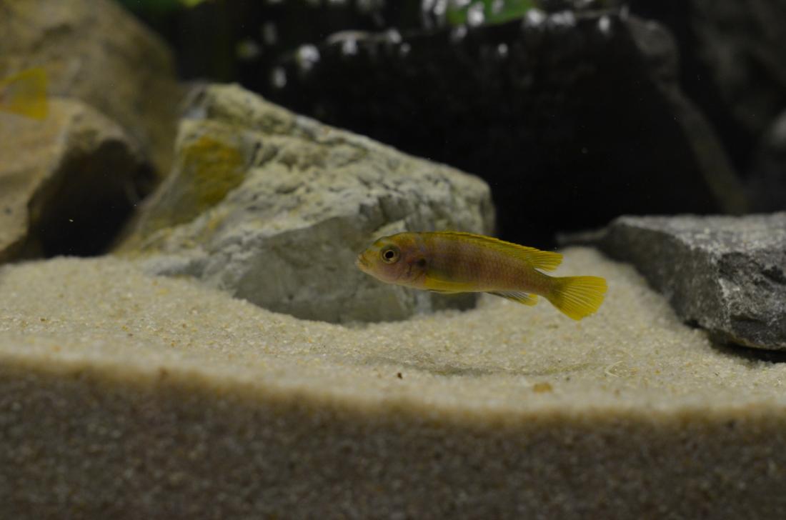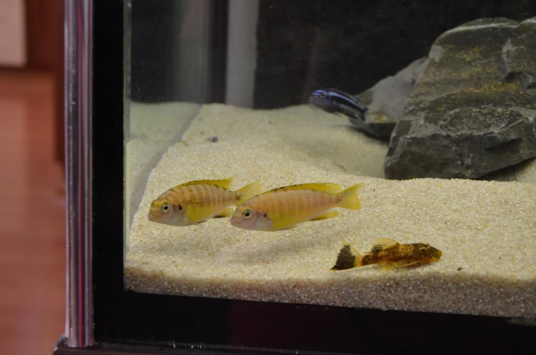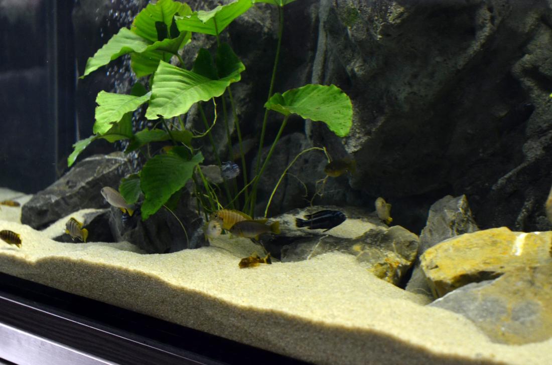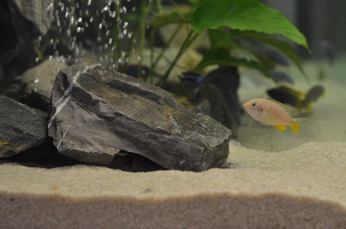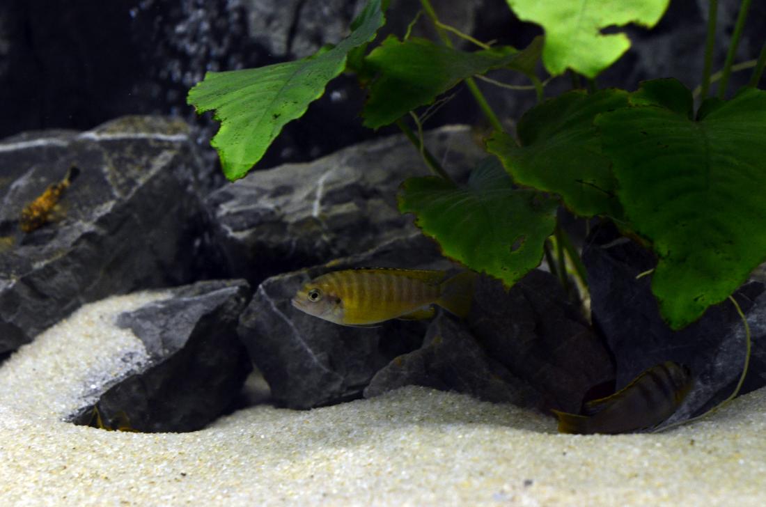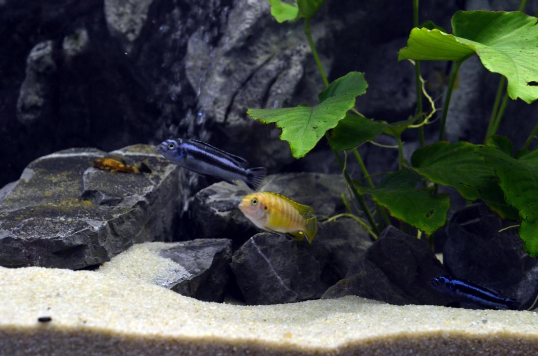 Ryby v nádrži: Labidochromis sp.Mbamba Bay, Melanochromis maingano, Pseudotropheus tropheops sp. ,,red fin,, Usisya, Ancistrus sp.Brown – LDA 16