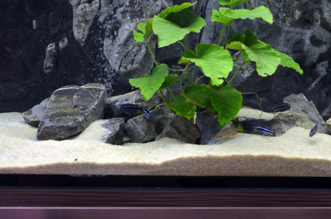 Dekorácia v nádrži: Pozadie, kamene, Anubiasi