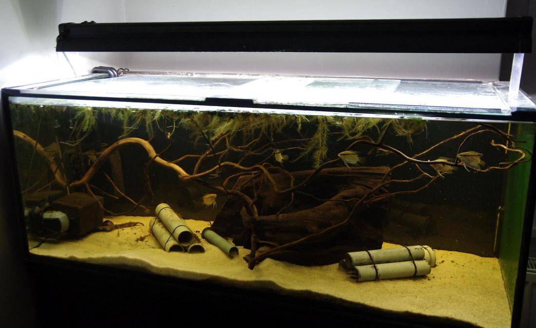 Konečně tu mám osvětlení tak jde i fotit. Akorát z osádky toho moc nezbude, jsou tu hlavně ryby, co jsem musel dát bokem kvůli nákupu zebrin (reganky a Mesonauty), ty půjdou k Ondrovi. Pak Brachyrhamdia meesi které se nemůžu zbavit a jedna ultraplachá Chaetostoma (ta zůstane).