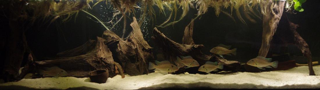 Zebriny už mají kolem 25cm, hrozně zmohutněly a už mají i trochu červené hrdlo. Taky toho hrozně sežerou. Nechtějí nechat satanům ani granule pro býložravé ryby, tak toho musím sypat hodně. Akorát jsou to hrozní poseroutkové a furt plaší. A čím méně stupňů v akváriu, tím je to horší. Už jsem zvedl teplotu na 26,5°C a asi by to chtělo ještě víc.