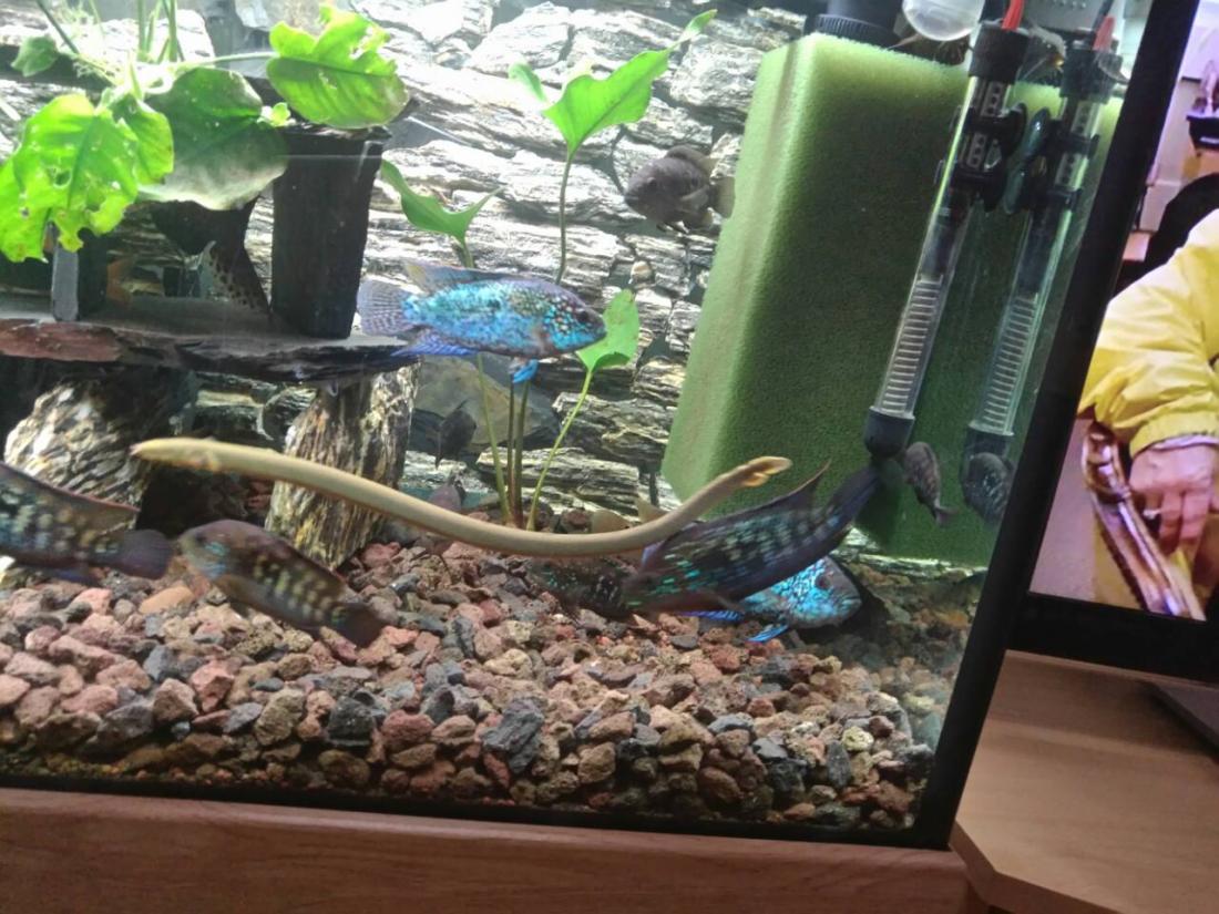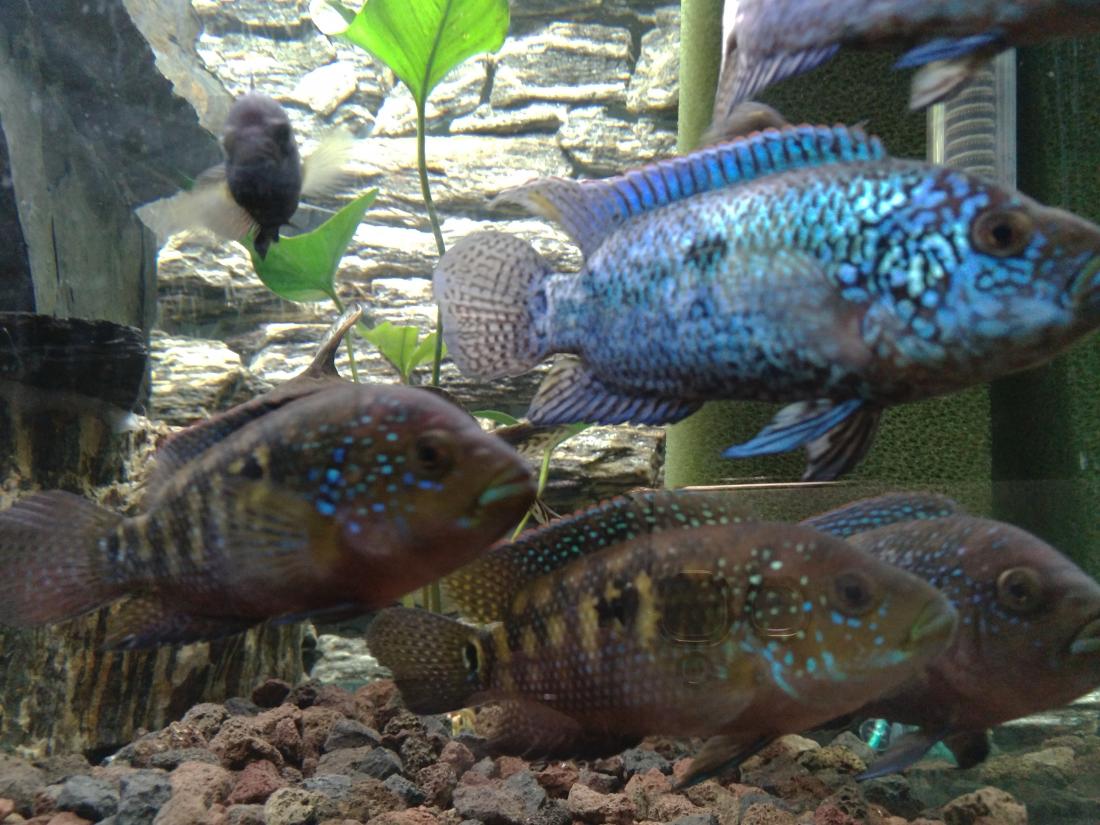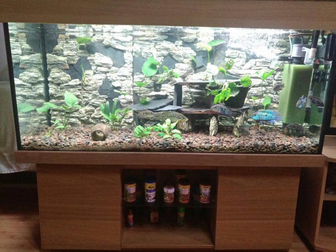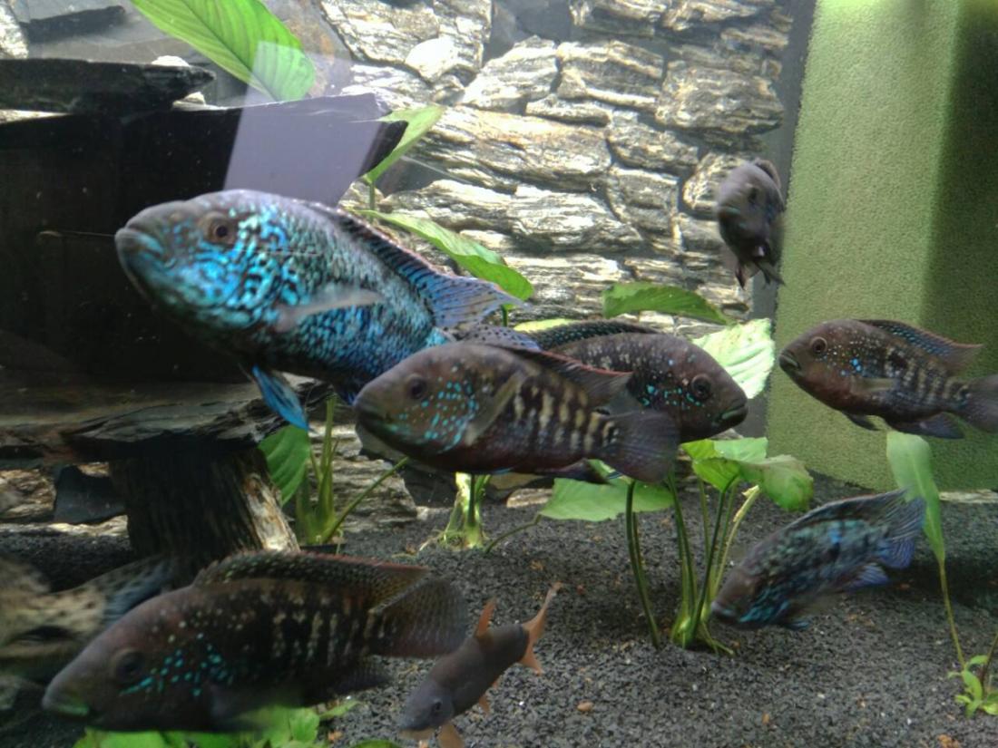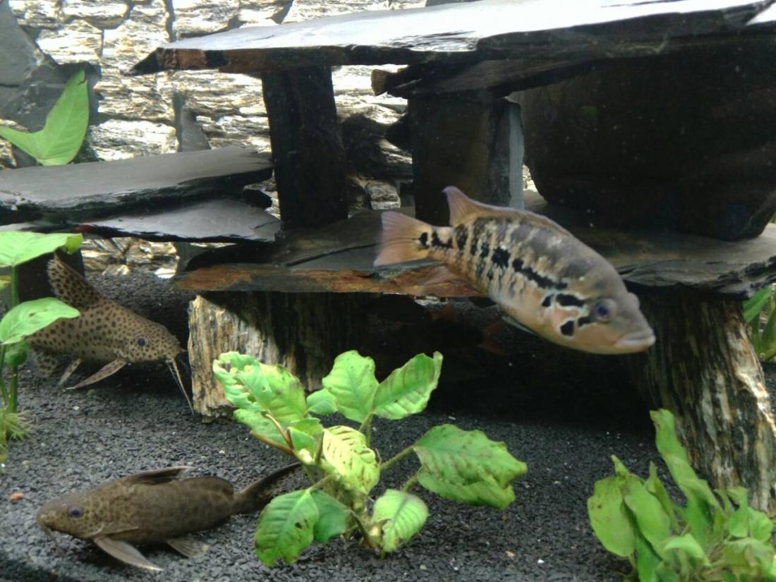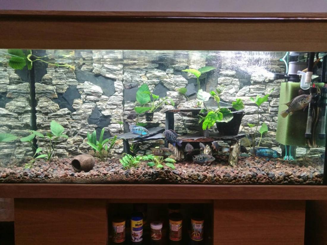 Ryby v nádrži: 7x Rocio octofasciata + 2x Rocio octofasciata EBJD +2x Parachromis motaguensis + 2x Bichirek kalabarský + 3x Sumček kukučí + 3x Mrenka žltoplutvá