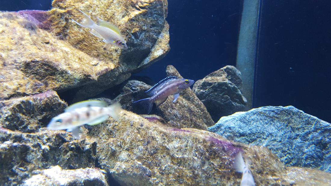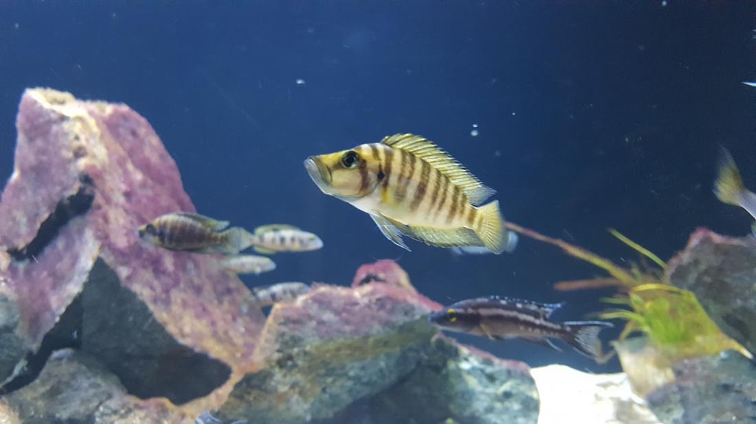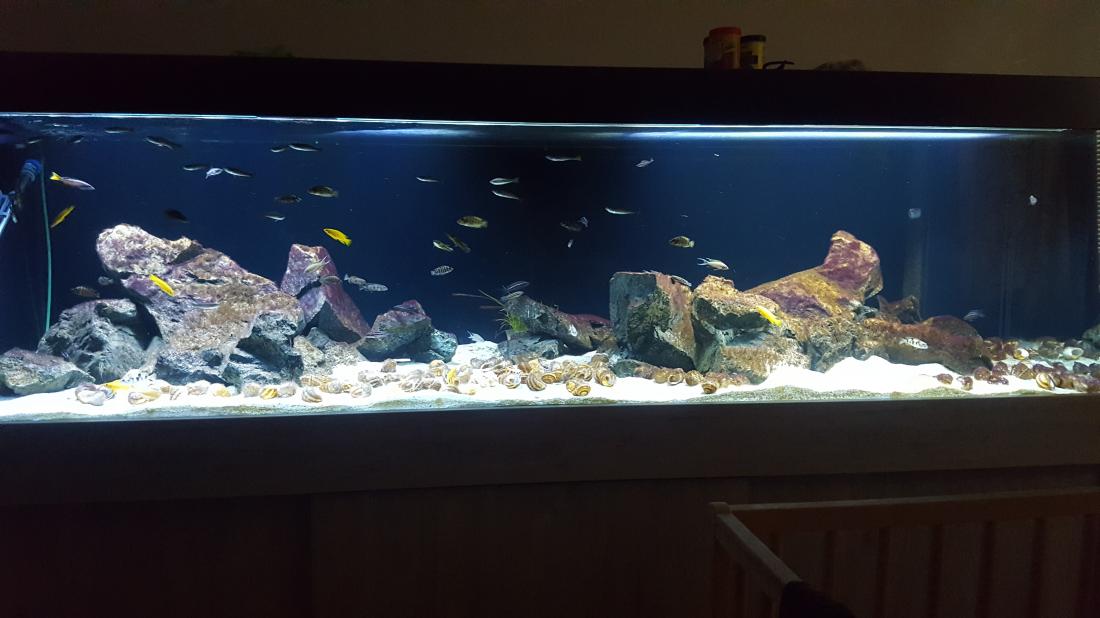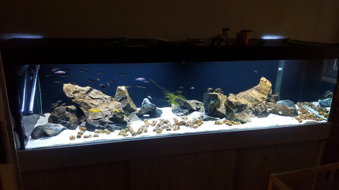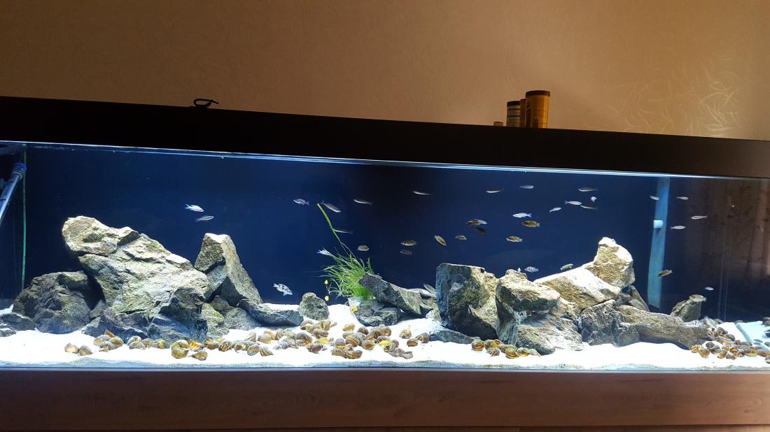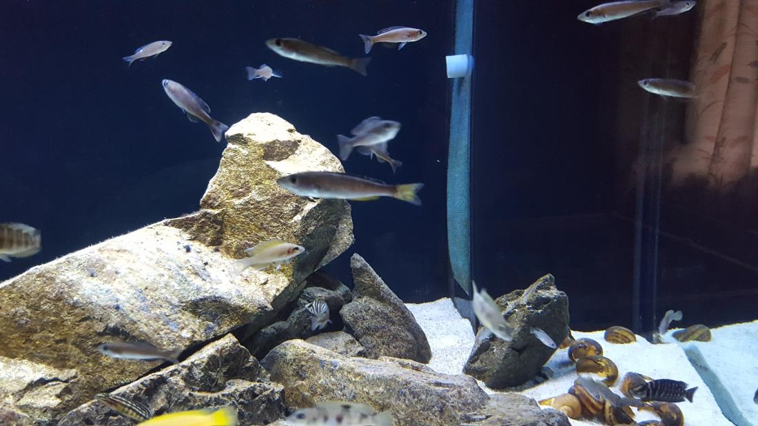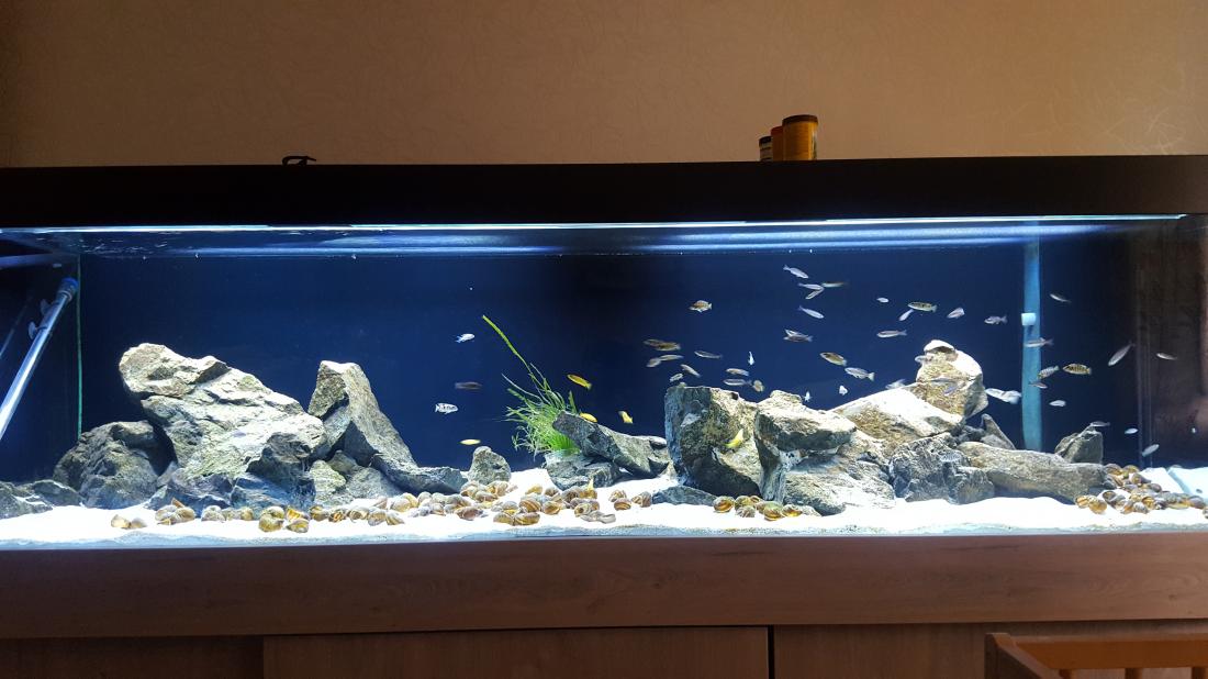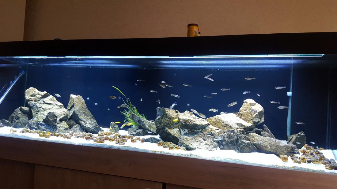 Bohužel Cyprichromis Bulu point se nedaří odchov, takže do akva jsem doplnil skupinu Cyprichromis leptosoma jumbo kitumba, 23 kousků (mělo jich být víc, ale 14 nepřežilo cestu kurýrem ). Když se zadaří doprava tak ještě doplním. Akva je jinak celkem bezproblémové, probíhá jen pravidelná údržba a každý druhý max. třetí den je třeba očistit skla.