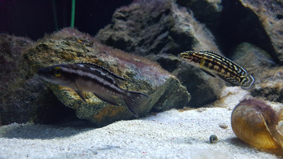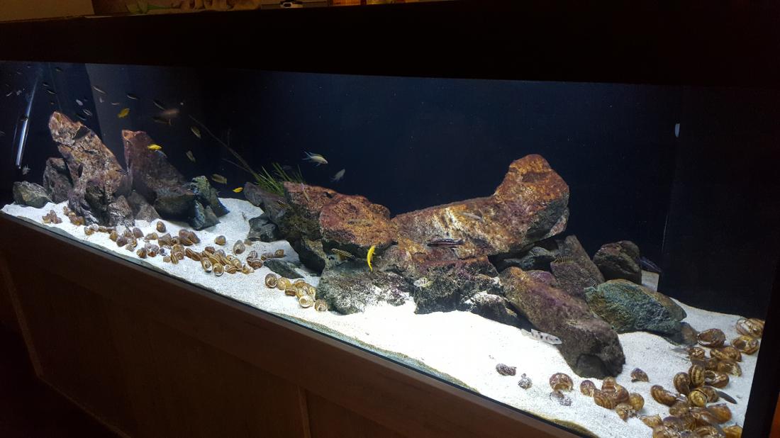 V akva se nic převratného neděje. Odešlo čerpadlo Jebao, než se vrátí z reklamace mám zapůjčené jiné od Libora. Na kamenech vyhrává hnědá řasa, ale světlo přidávat nebudu, takže to tak nejspíš zůstane. Ryby jsou v plném počtu, teda minus jeden calvusák proskočil mezi krycimi skly a do rána to nedal. Leleupi se začínají rvát jak koně, stejně tak buescheri vyčlenili jeden kus který je otloukánek. Takže budu omezovat postupně počty. Boulengery mají zase nakladeno v ulitě, stejně tak i mulťáci. Ale potěr nemá v akva velkou životnost. Nemám aktuálně ambice ani čas na zakládání dalšího akva .