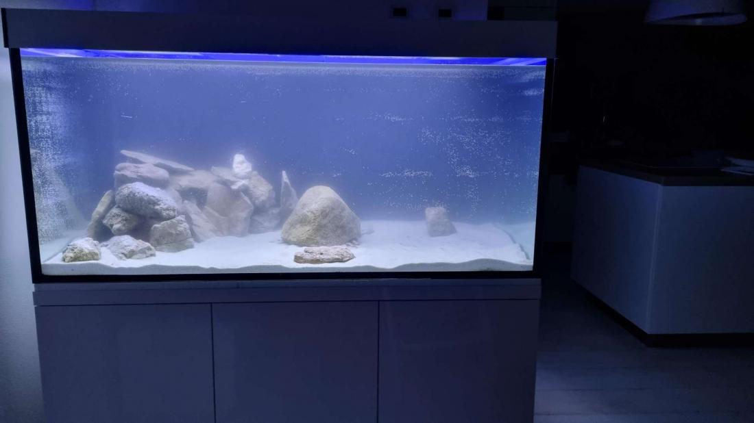 Okolo 19tej už akvárium bolo "nadizajnované" - porota ho jednohlasne odsúhlasila a tak som sa pustil do napúšťania a priebežného dopĺňania EasyLife roztoku.