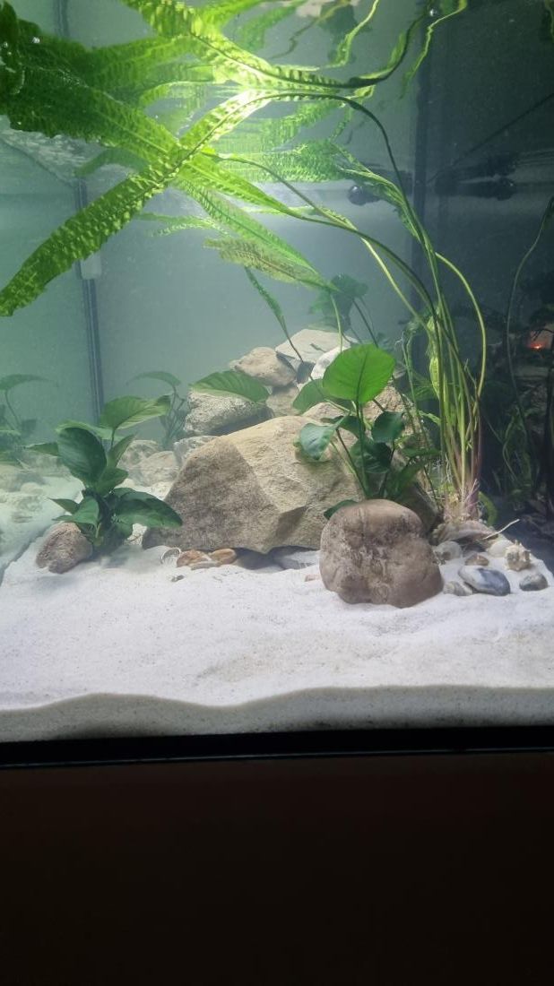 - Anubiasy sú pekné, dva aj vyhnali nové lístky a 3 z nich som trošku presadil a presunul pri zmene rozloženia, aby sa vytvoril väčší priestor pre Enantyopusy a, ale neubralo sa miesto ostatným rybkám. Uvidíme ako to bude fungovať.