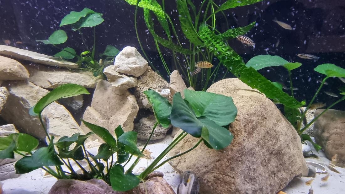 Doviezol som si novú, zdravú veľkú Cryptocorynu, ktorú som zasadil ešte pred nasadením nového afrického osadenstva - podľa mňa to pekne spestrila a do budúcna ponúkla predovšetkým Leptossomám peknú možnosť súkromia.